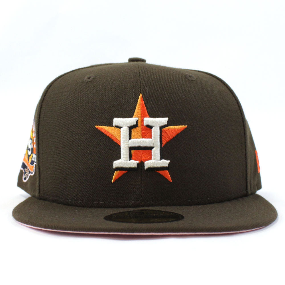 Houston Astros 45TH ANNIVERSARY New Era 59Fifty Fitted Hat in Brown with PINK Under Brim.