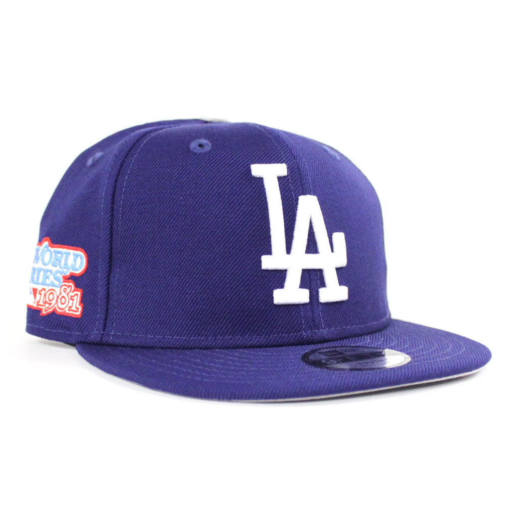 "Kids" Los Angeles Dodgers 1981 World Series New Era 9Fifty Snapback Hat in Blue & Gray Under Brim.