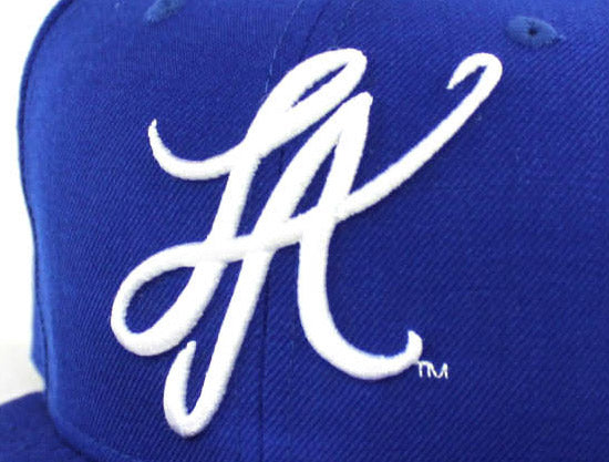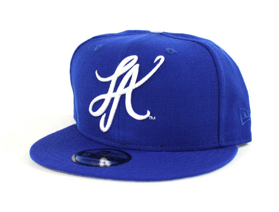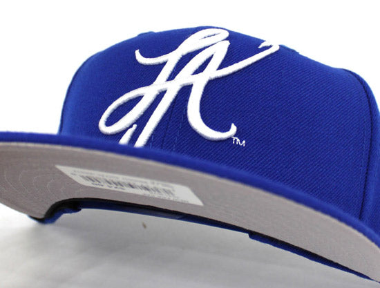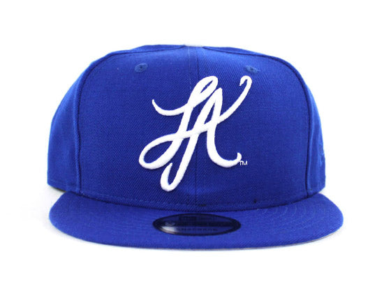 LA Script New Era 9Fifty Snapback Hats (Blue Gray Under Brim)