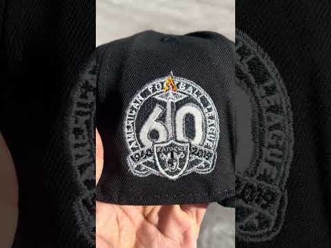 Las Vegas Raiders American FootBall League 60th Anniversary New Era 59Fifty Fitted Hat in Black with Green Under Brim.