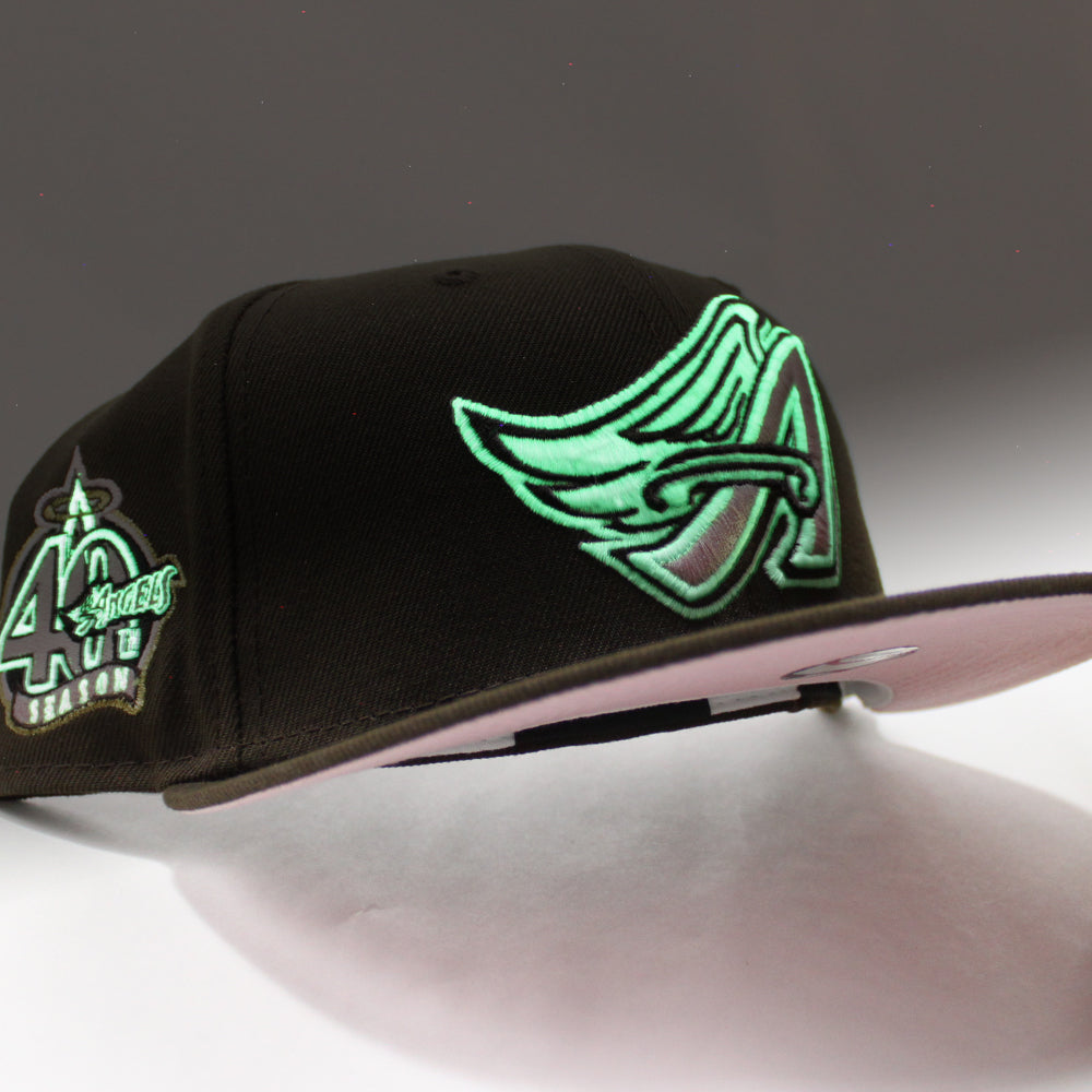Anaheim Angels 40th Anniversary New Era 59Fifty Fitted Hat in GITD, Walnut & Pink Under Brim.