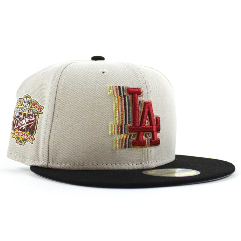 Los Angeles Dodgers 40th Anniversary New Era 59Fifty Fitted Hat in Stone, Black and Gray Under Brim.