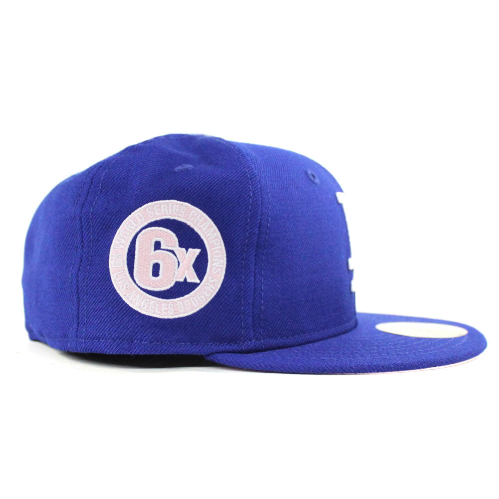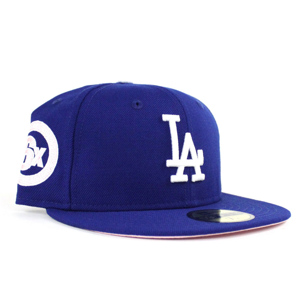 Los Angeles Dodgers 6X World Series New Era 59Fifty Fitted Hat in Blue & Pink Under Brim.