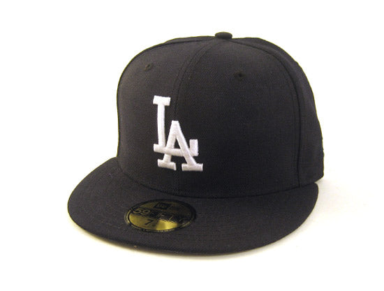 The East Coast does have love for the West Coast, we show it in this Los Angeles Dodgers New Era 59Fifty Fitted Hat is New York Yankees colors. The LA Dodgers New Era 5950 Fitted Cap is Navy based with a white "LA" and features a grey Bottom.