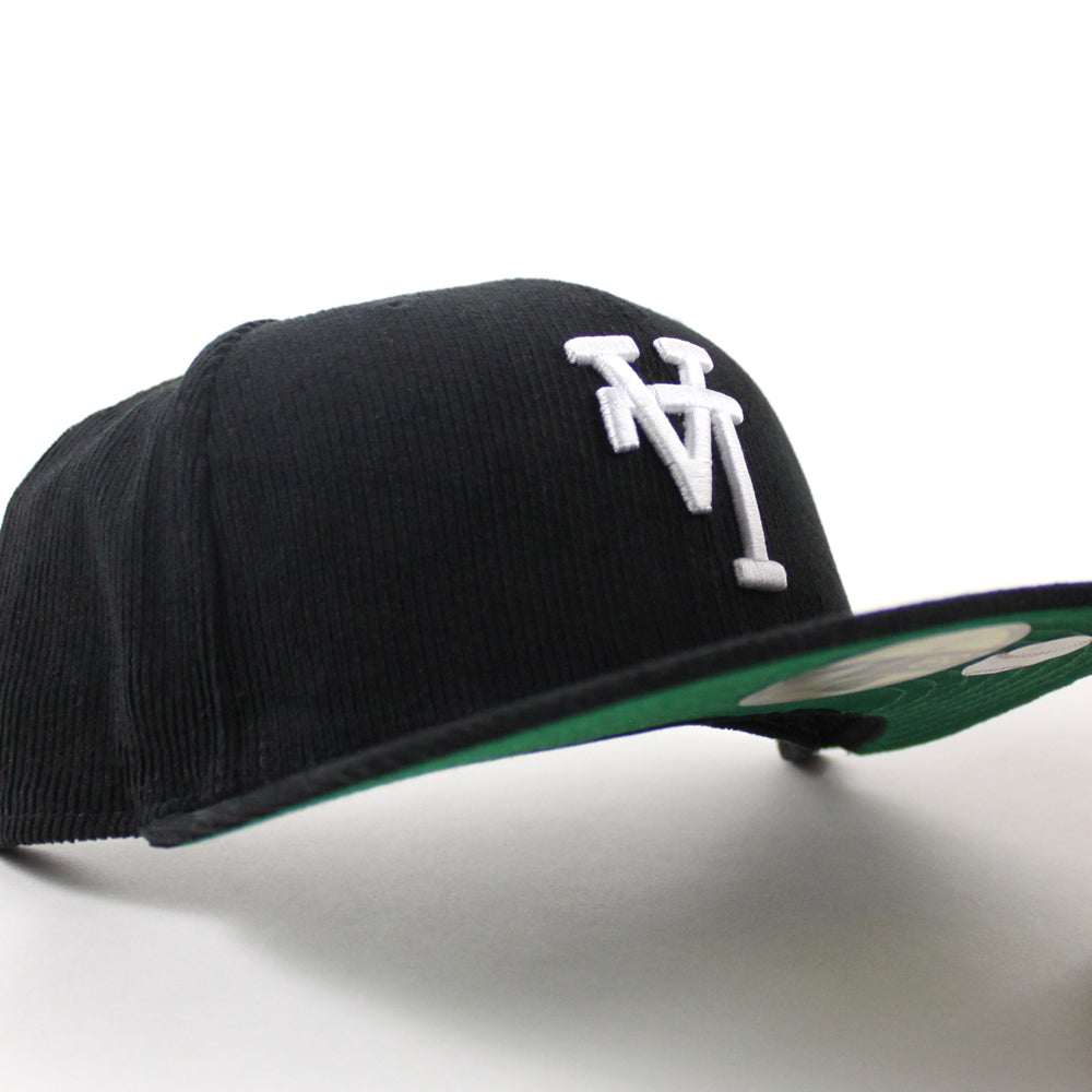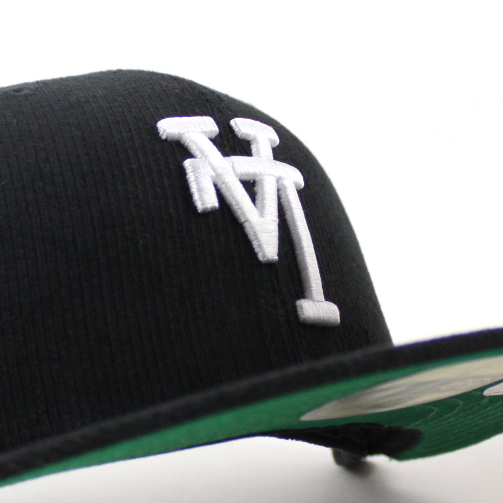 Los Angeles Dodgers Upside Down Corduroy New Era 59Fifty Fitted Hat in Black and Green Under Brim.