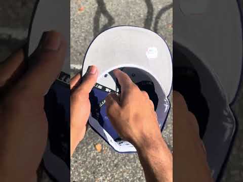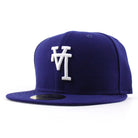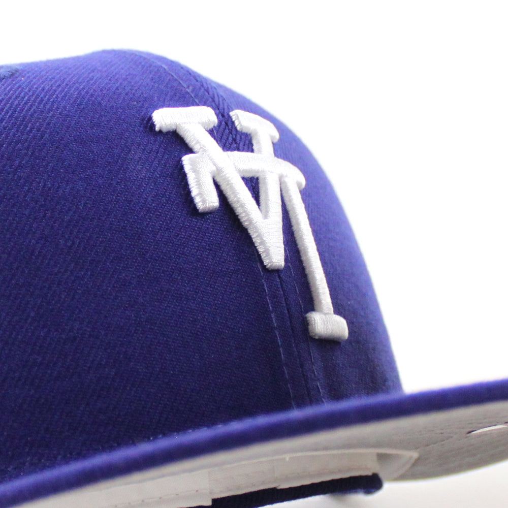 Los Angeles Dodgers Upside Down Logo New Era 59Fifty Fitted Hat in Dark Royal Blue and Gray Under Brim.