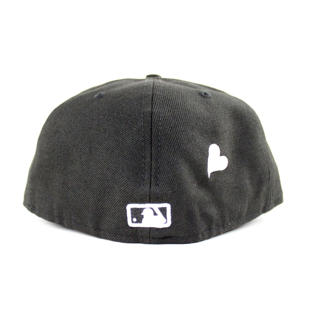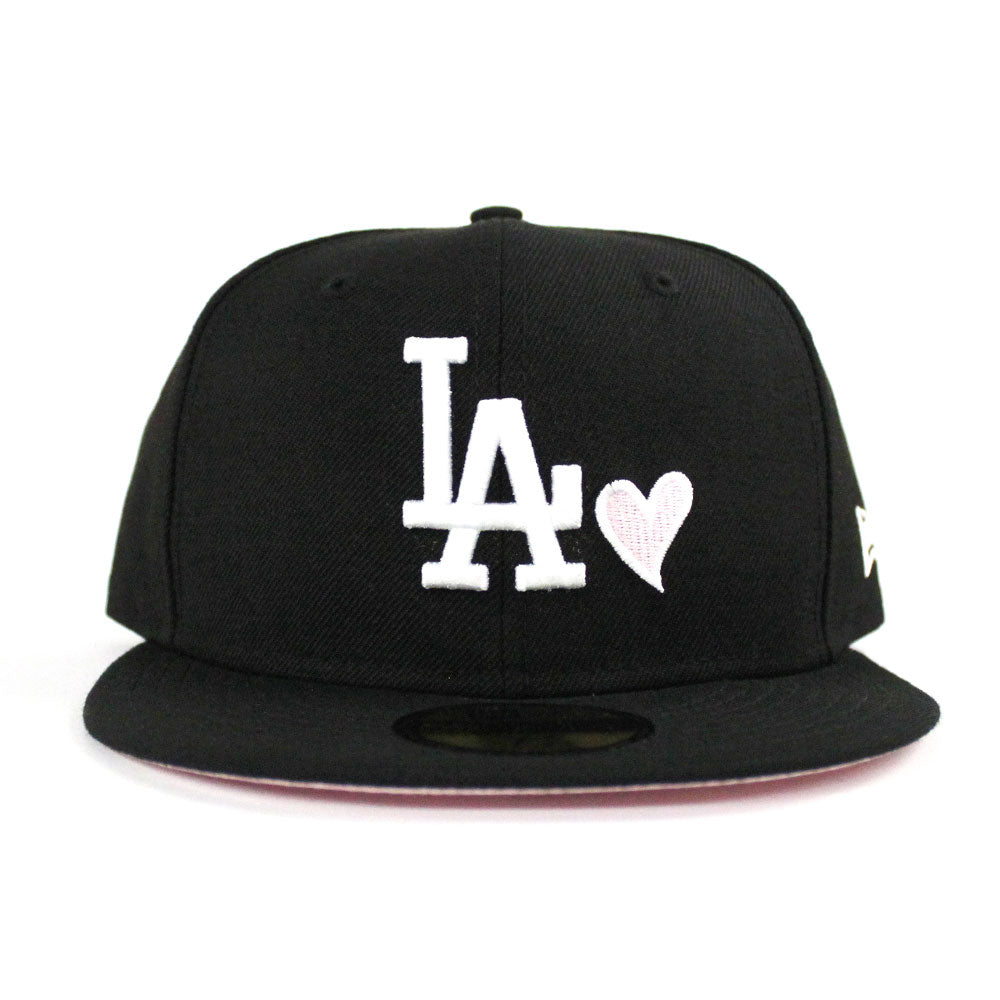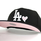 Heart Love Los Angeles Dodgers New Era Fitted 59Fifty Hat in Black & Pink Under Brim.