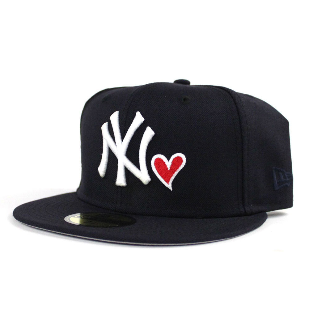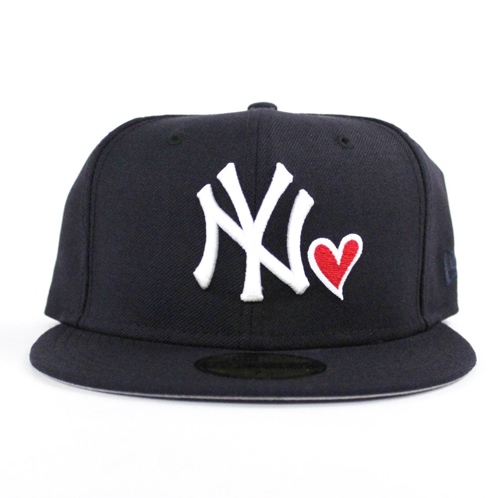 Heart Love New York Yankees New Era 59Fifty Fitted Hat in Navy & Gray Under Brim