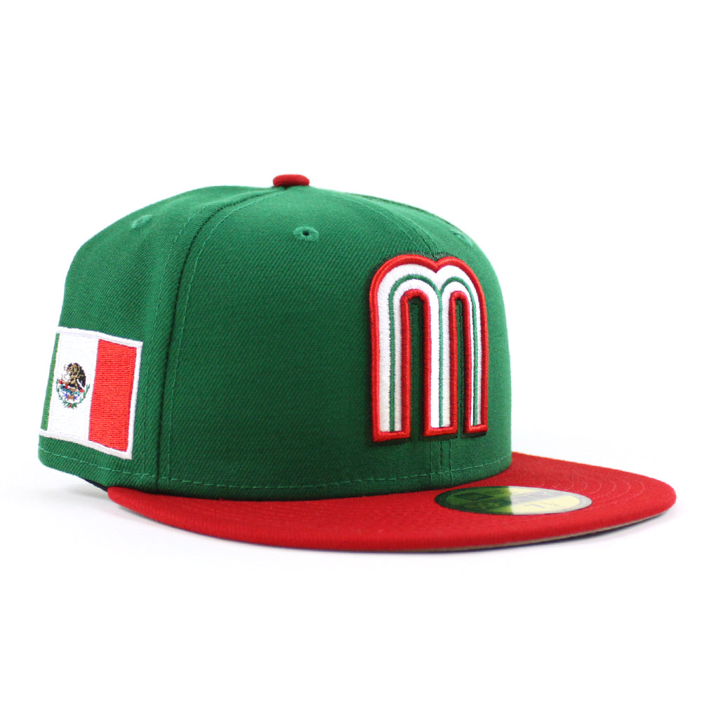 Mexico 2023 World Baseball Classic (WBC) New Era 59Fifty Fitted Hat in Green, Red, and Grey Under Brim.