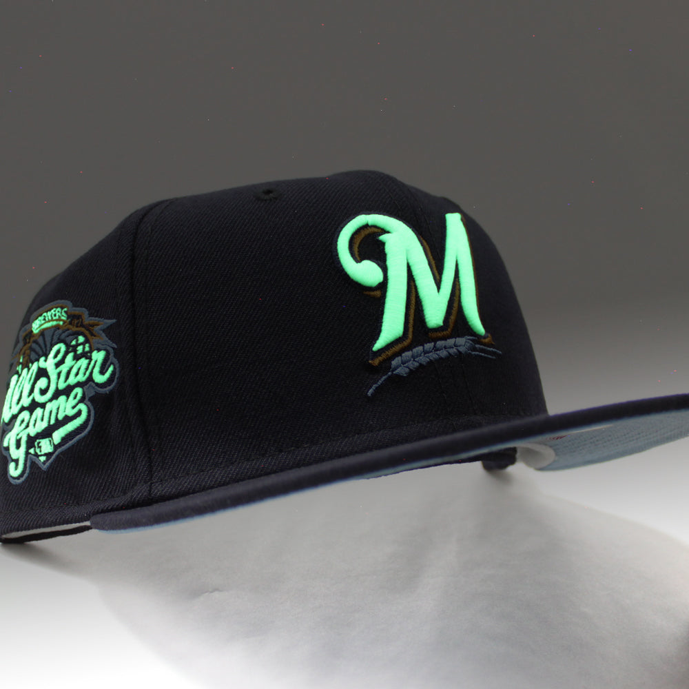 Milwaukee Brewers 2002 All-Star Game New Era 59Fifty Fitted Hat (GITD Logo Navy Sky Blue Under Brim)