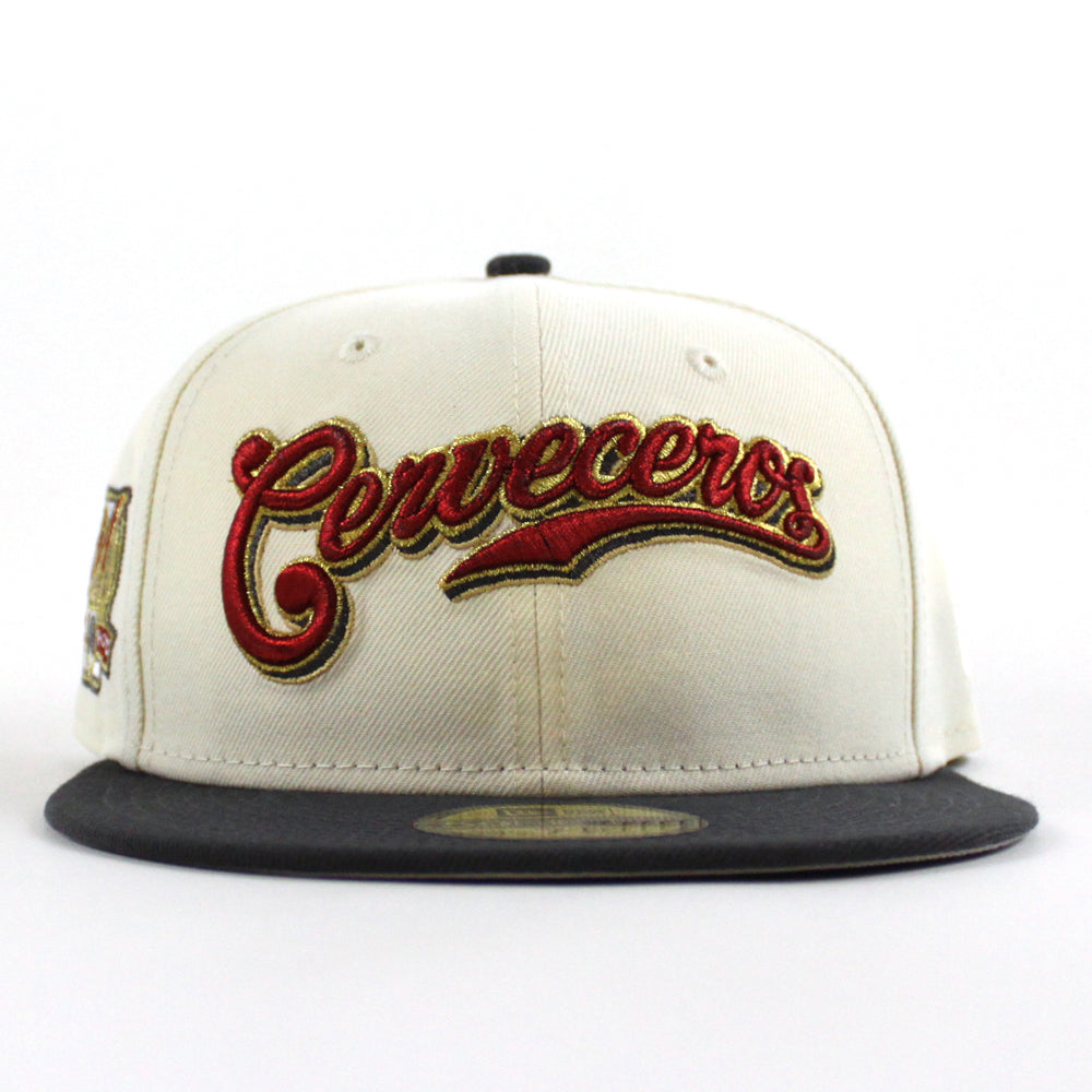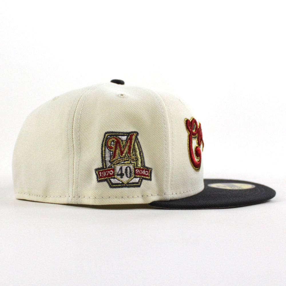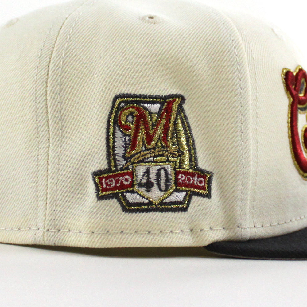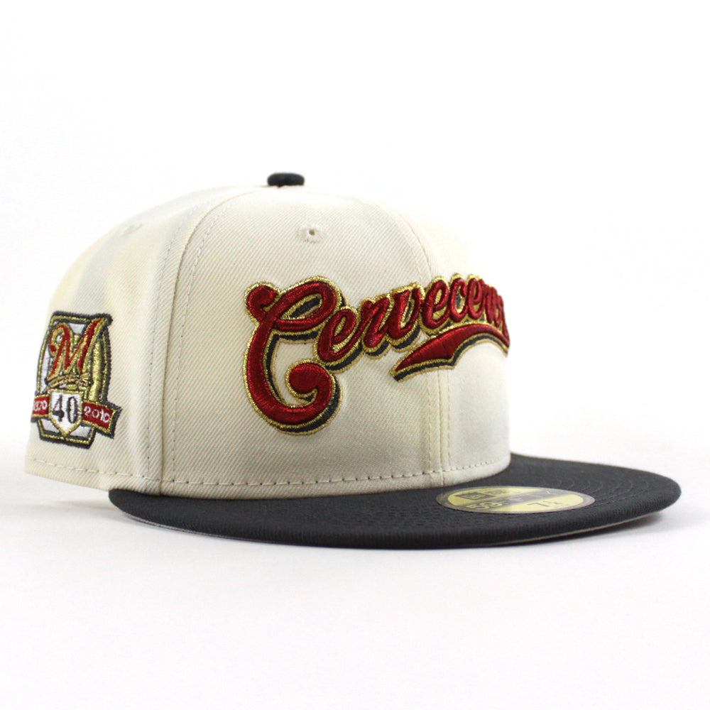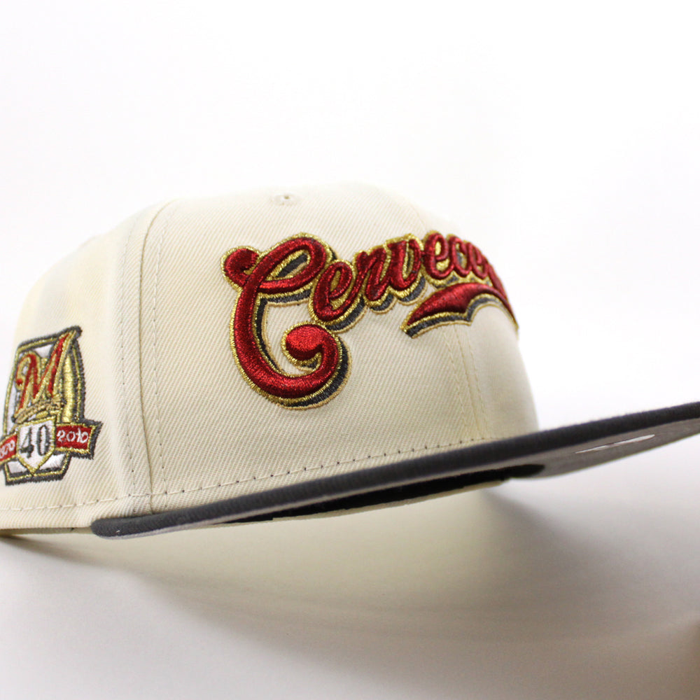 Cervecros-Milwaukee Brewers 40TH New Era 59Fifty Fitted Hat in Chrome White, Graphite and Gray Under Brim.