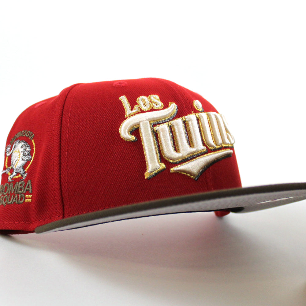 Los Twins Minnesota Twins Bomba Squad New Era 59Fifty Fitted Hat (Scarlet Red Walnut and Gray Under Brim)