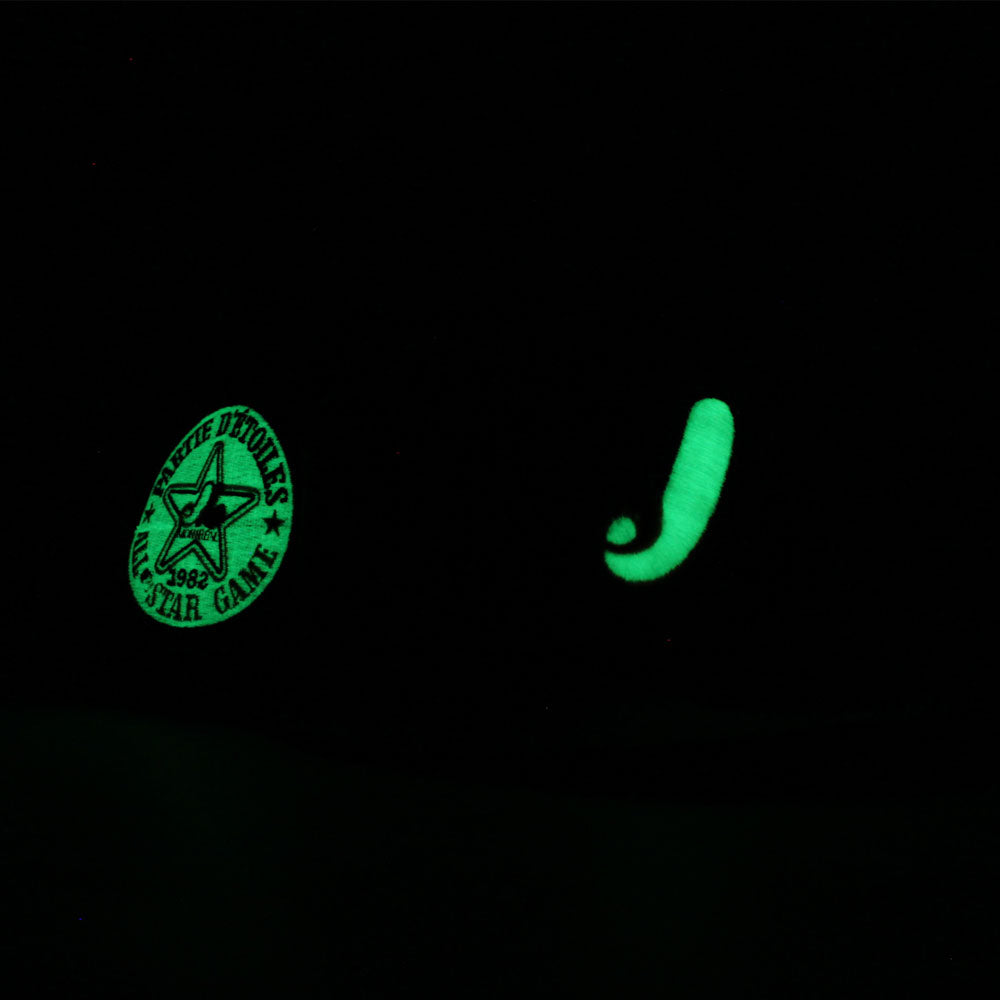 Simply Expose Logo to Sunlight (or bright light) for at least one full minute to activate the green phosphorescent glow. The longer it is exposed, the longer and brighter the afterglow will be.