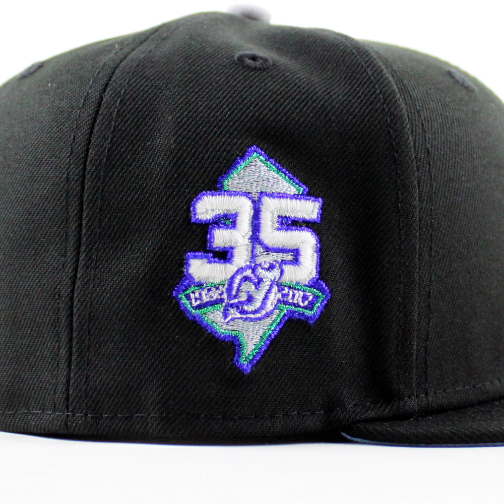New Jersey Devils 35 Years New Era 59Fifty Fitted Hat in Black and a Sky Blue Under Brim.