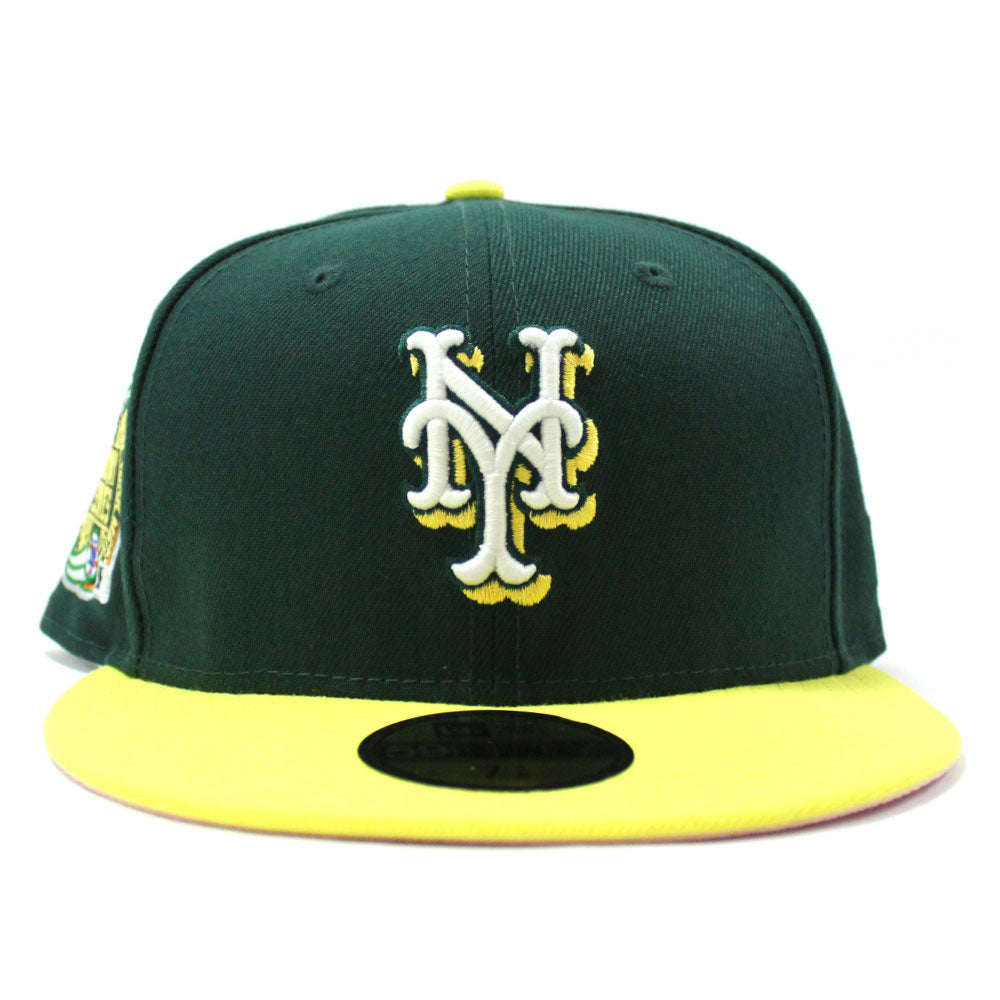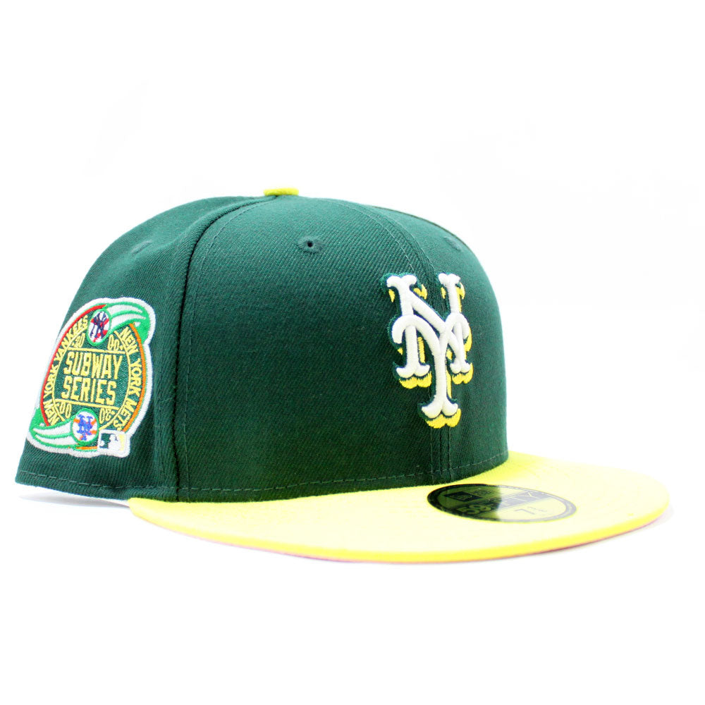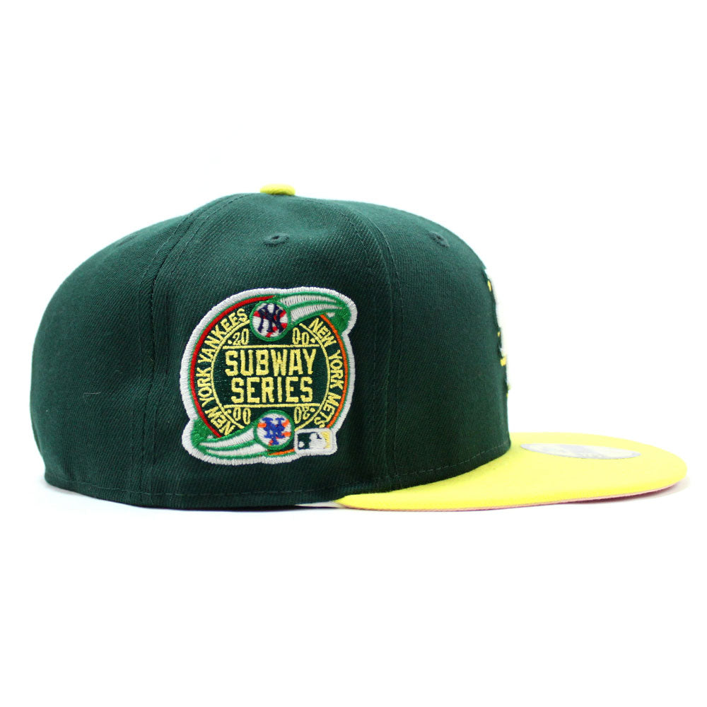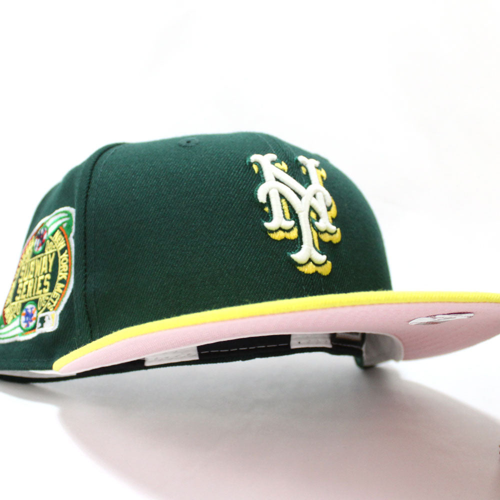 Subway Color Way New York Mets 2000 World Series New Era Fitted Hat in Dark Green, Yellow & Pink Under Brim. Design by Jason.
