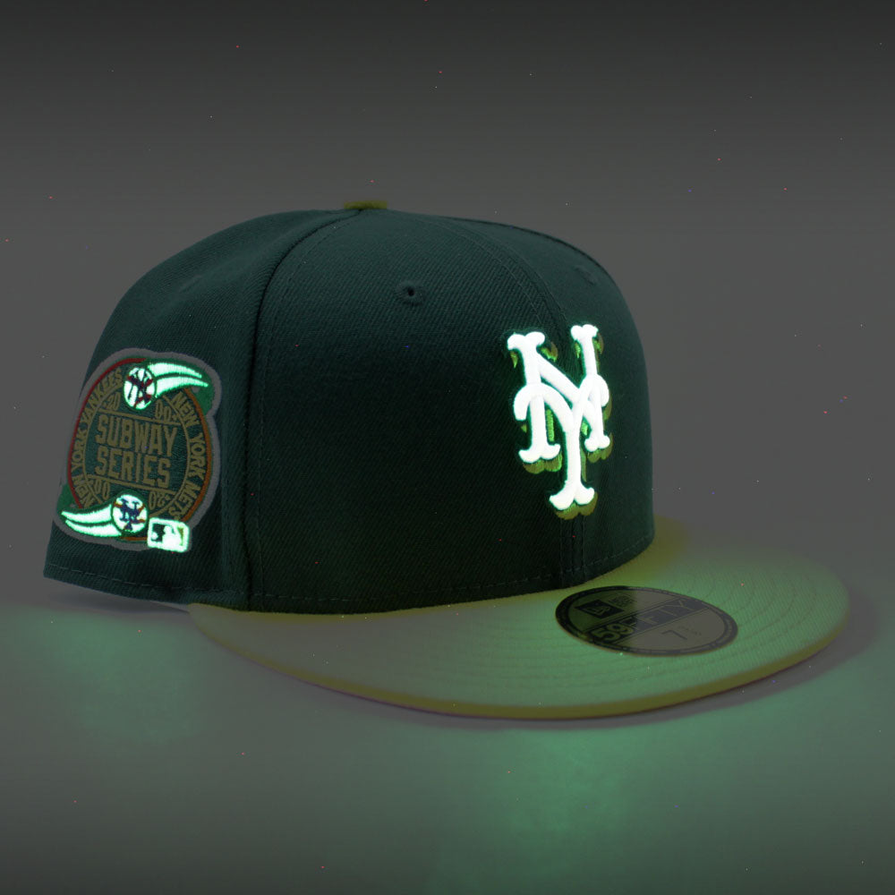 New York Mets 2000 World Series New Era 59Fifty Fitted Hat (Dark Green Yellow Subway Color Way Glow in the Dark Pink Under Brim)