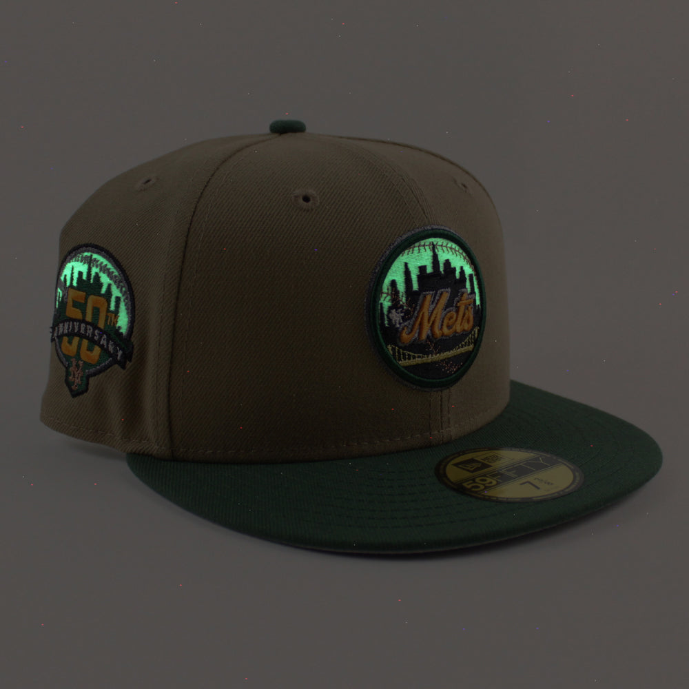 New York Mets 50th Anniversary New Era 59Fifty Fitted Hat (Glow in the Dark khaki Cilantro Gray Under Brim)