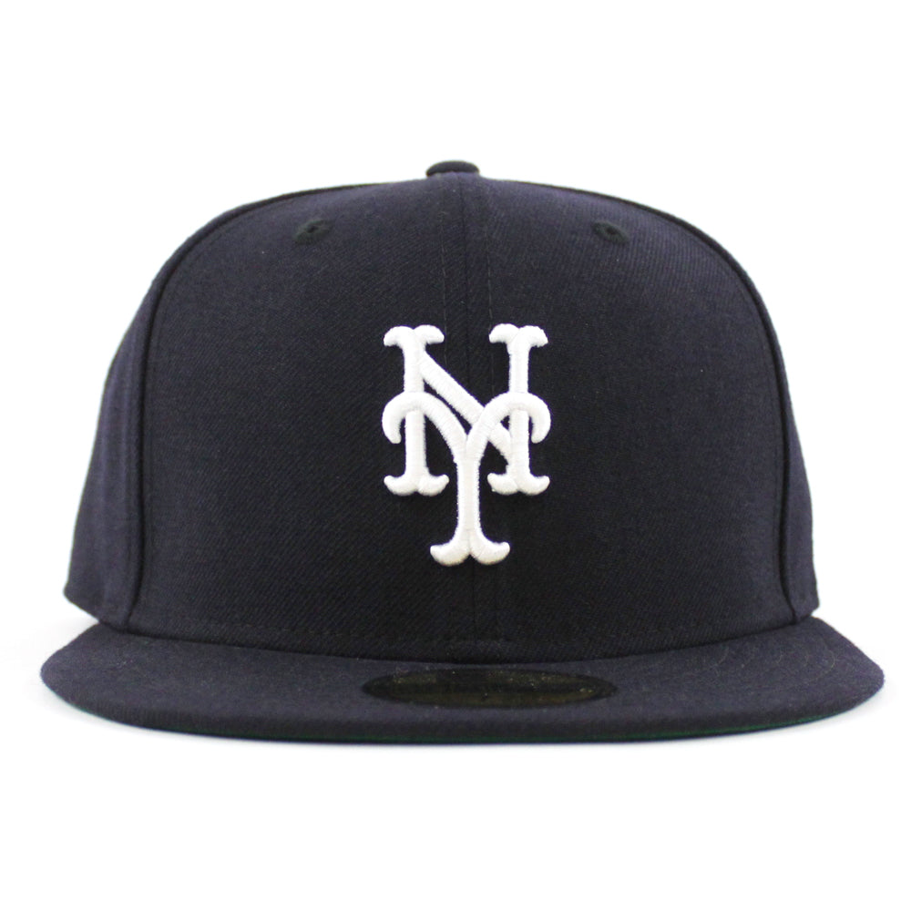 New York Mets New Era Fitted Hat in Navy With Green Under Brim.