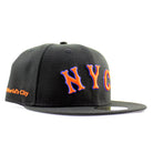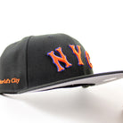 New York Mets The Worlds City Patch New Era Fitted Hat in Black and Gray Under Brim.