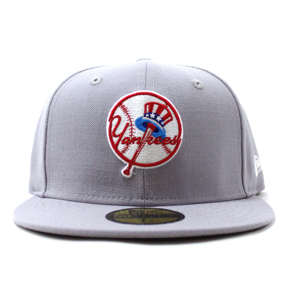 This Yankee New Era Fitted Cap is Grey with a white logo and Gray Under Brim.