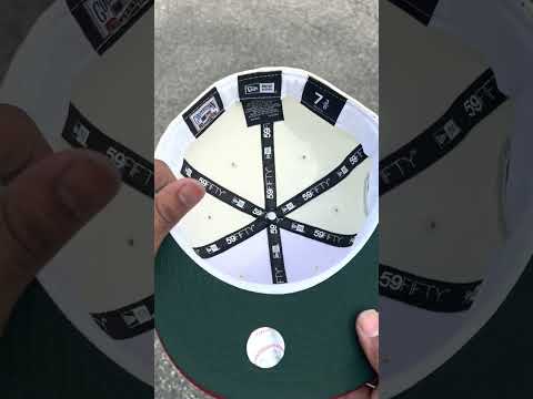 New York Yankees 1947 World Series 100TH Anniversary New Era 59Fifty Fitted Hat in Chrome White, Red, Green Under Brim.