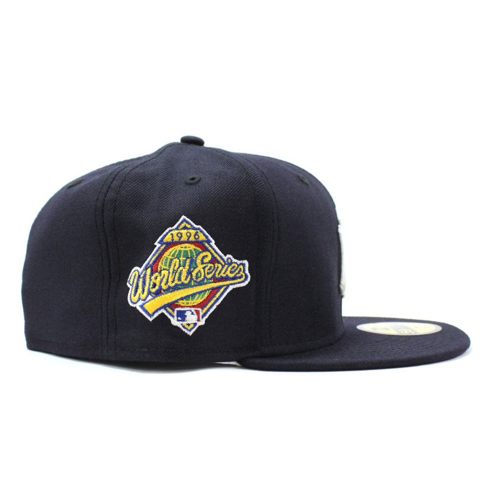 New York Yankees 1996 World Series 59Fifty New Era Fitted Hat in Navy with Purple Under Brim.
