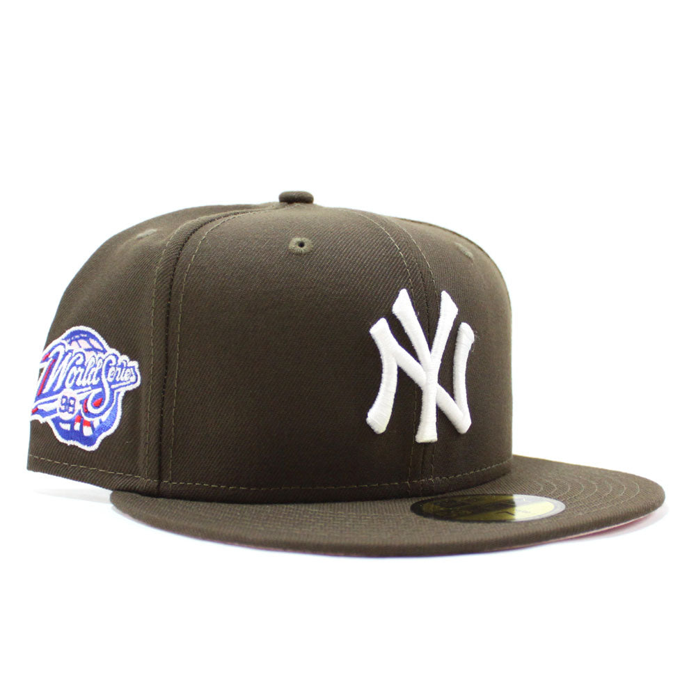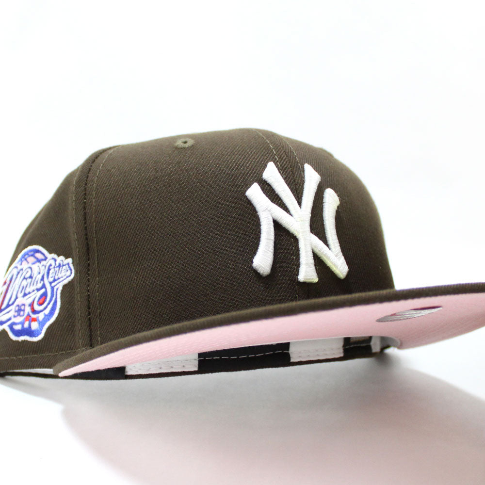 New York Yankees 1998 World Series 59Fifty New Era Fitted Hat in Brown with Pink Under Brim.