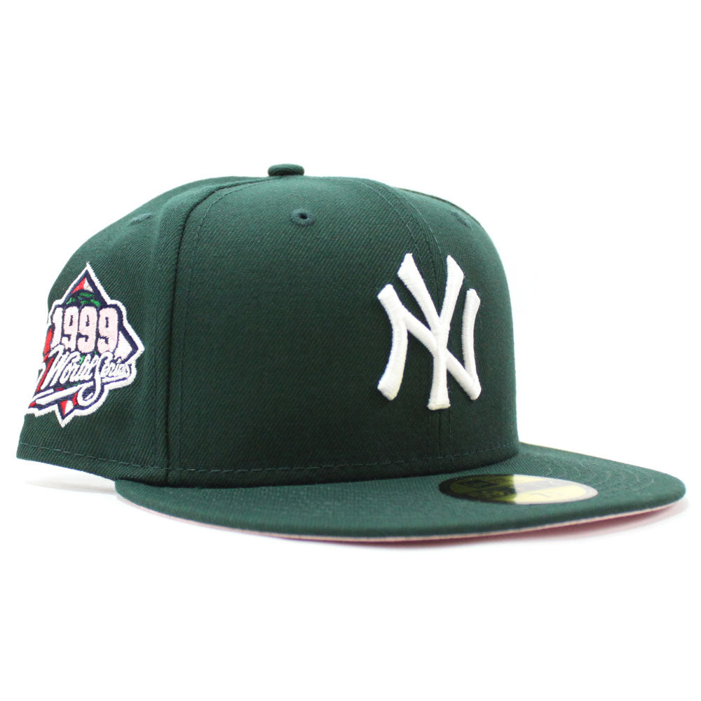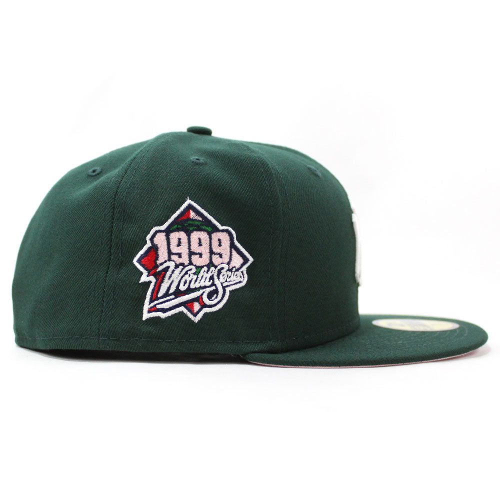 New York Yankees 1999 World Series New Era 59Fifty Fitted Hat in Dark Green & Pink Under Brim.