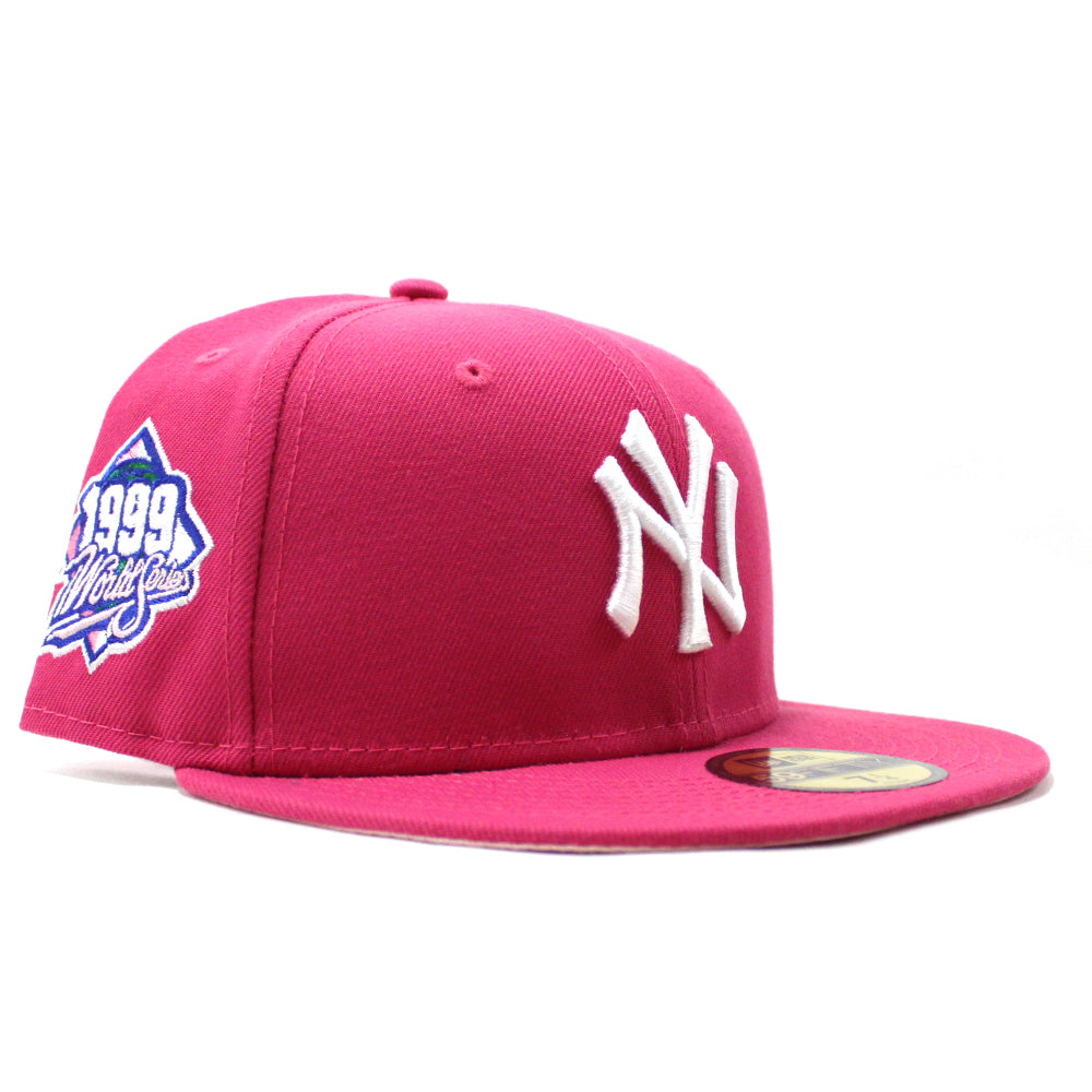 New York Yankees 1999 World Series New Era 59Fifty Fitted Hat (Lava Red Pink Under Brim)