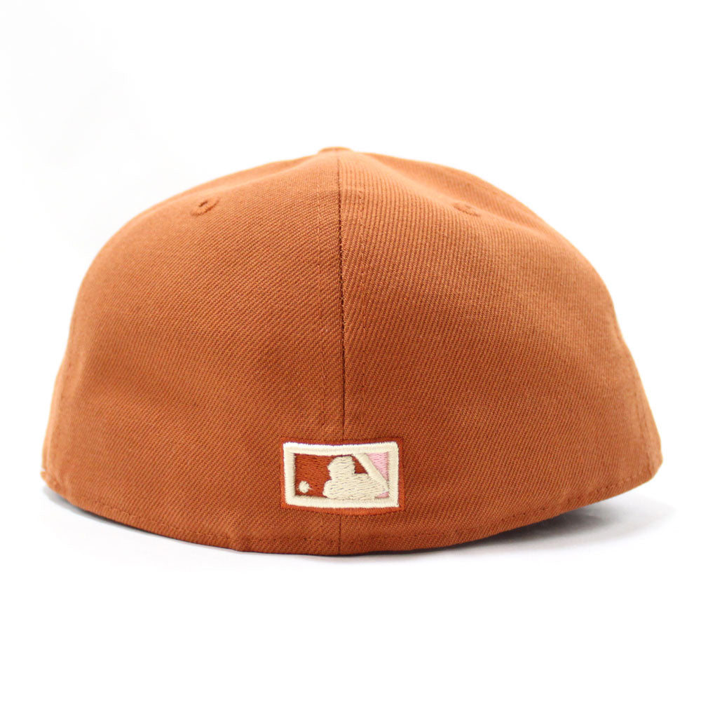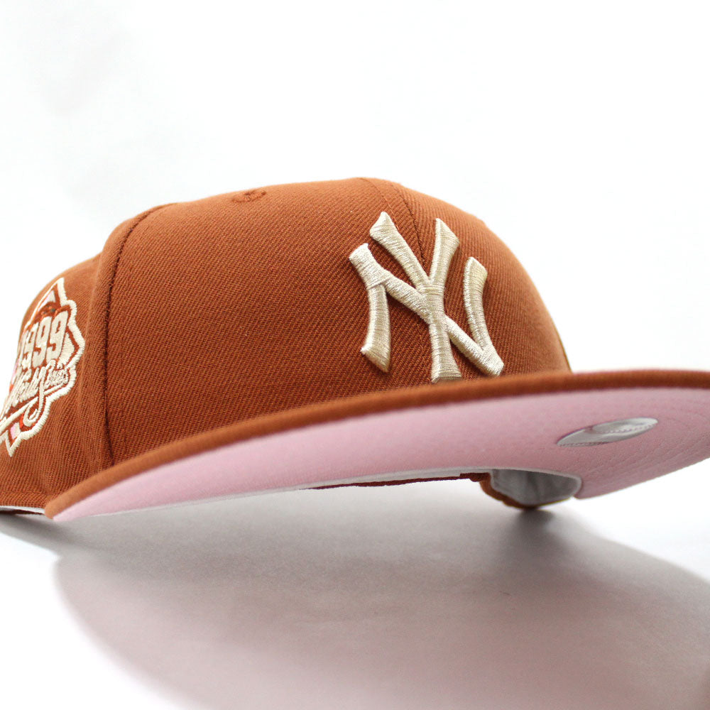 New York Yankees 1999 World Series New Era 59Fifty Fitted Hat in Rust Orange & Pink Under Brim. Pink UV.