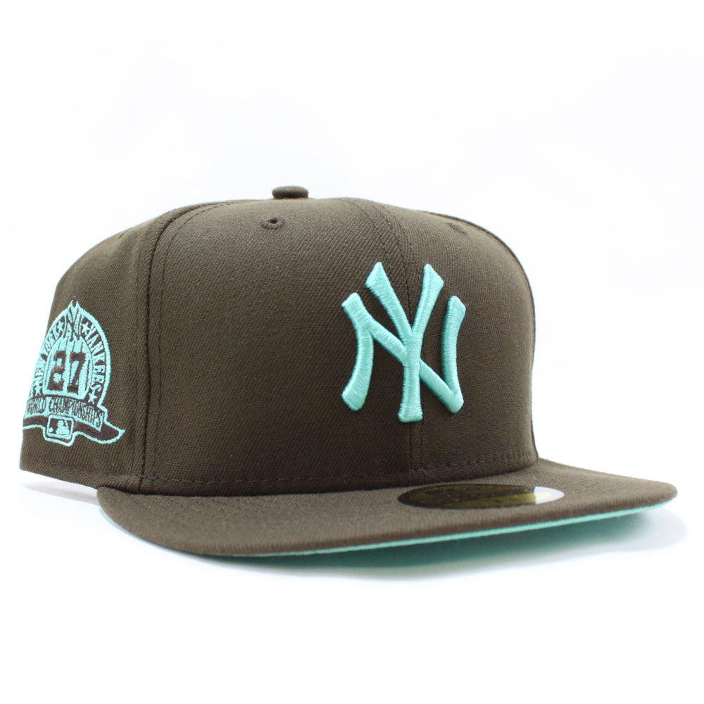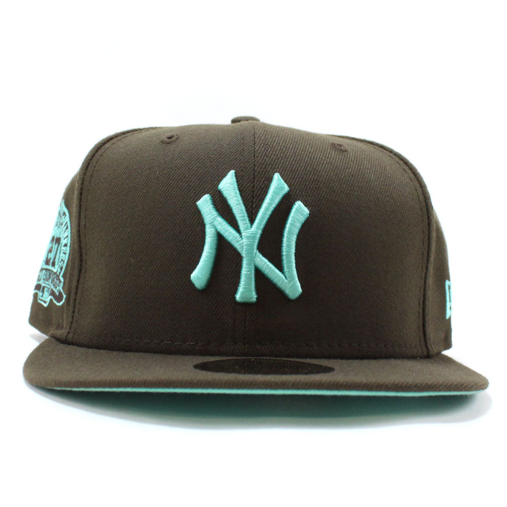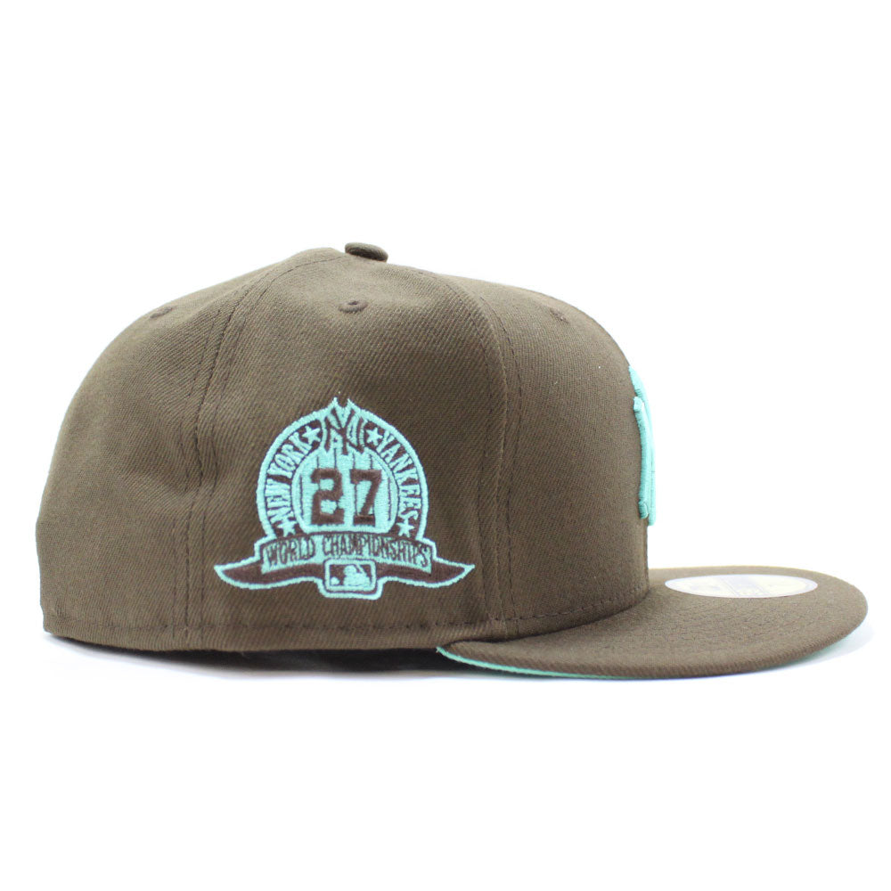 New York Yankees 27 Champions New Era 59Fifty Fitted Hat in Brown & Teal Under Brim.