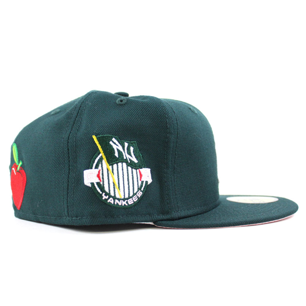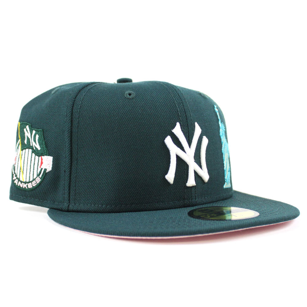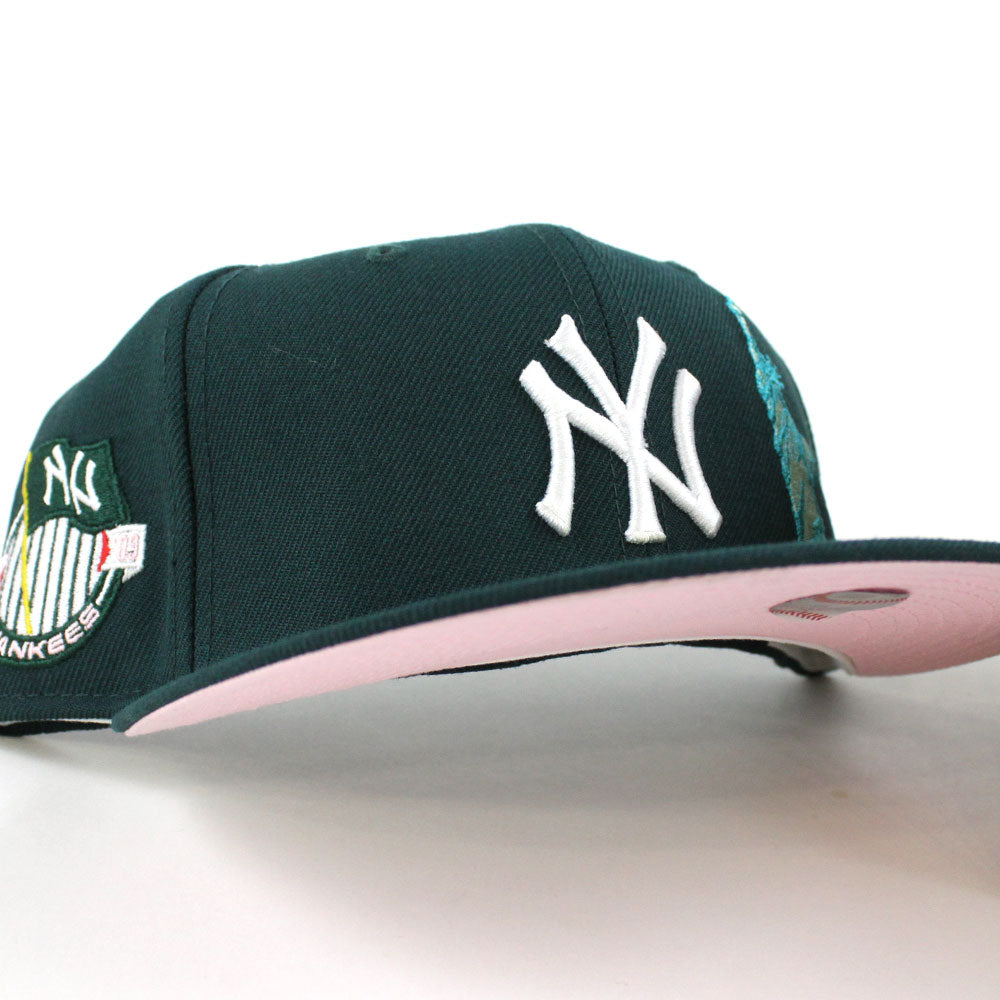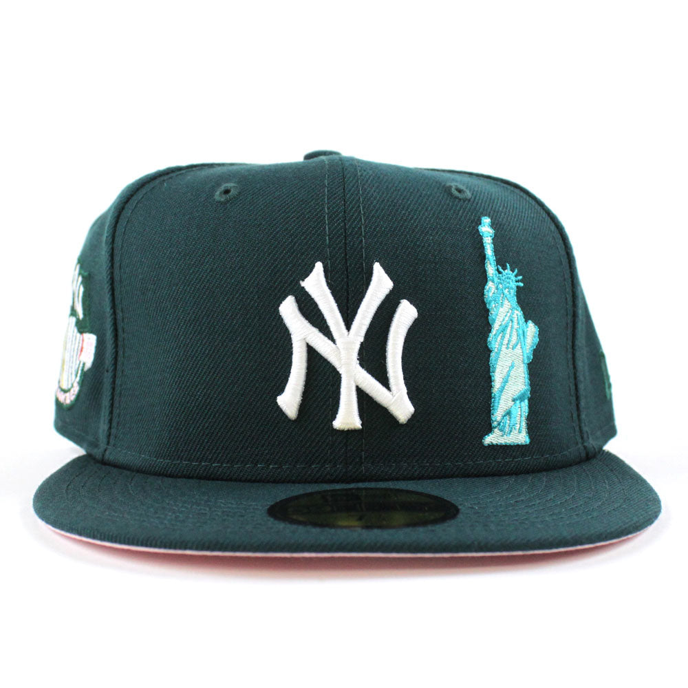 New York Yankees APPLE Statue Of Liberty National Monument New Era 59Fifty Fitted Hat in Green & Pink Under Brim.