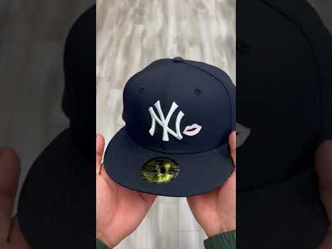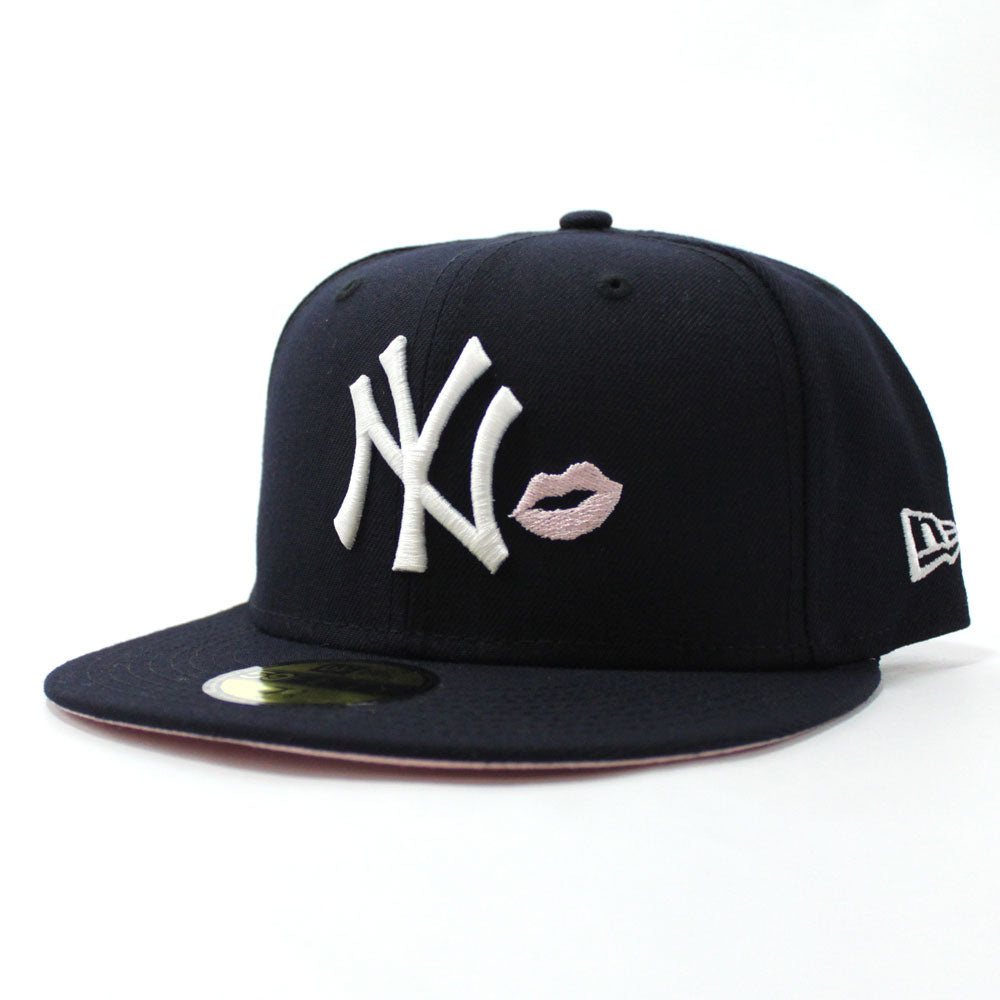 New York Yankees Kiss New Era 59Fifty Fitted Hat in Navy & Pink Under Brim.