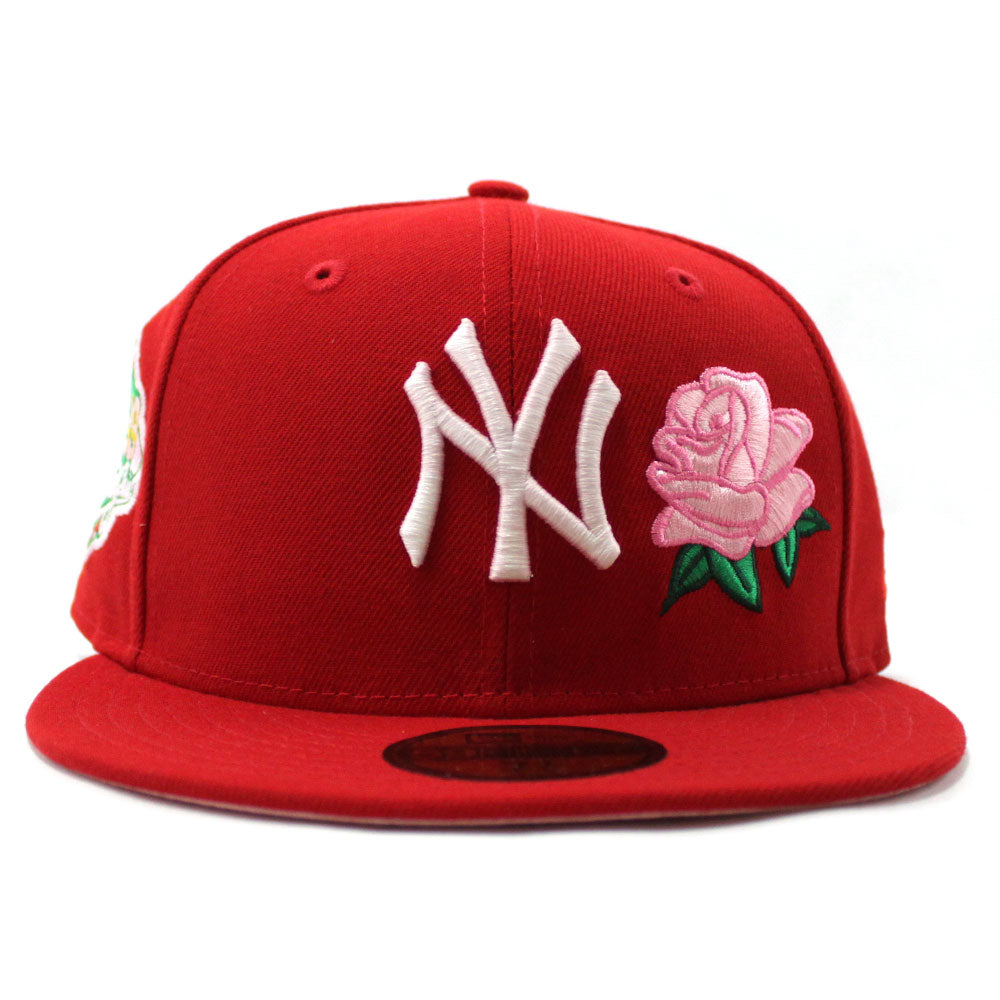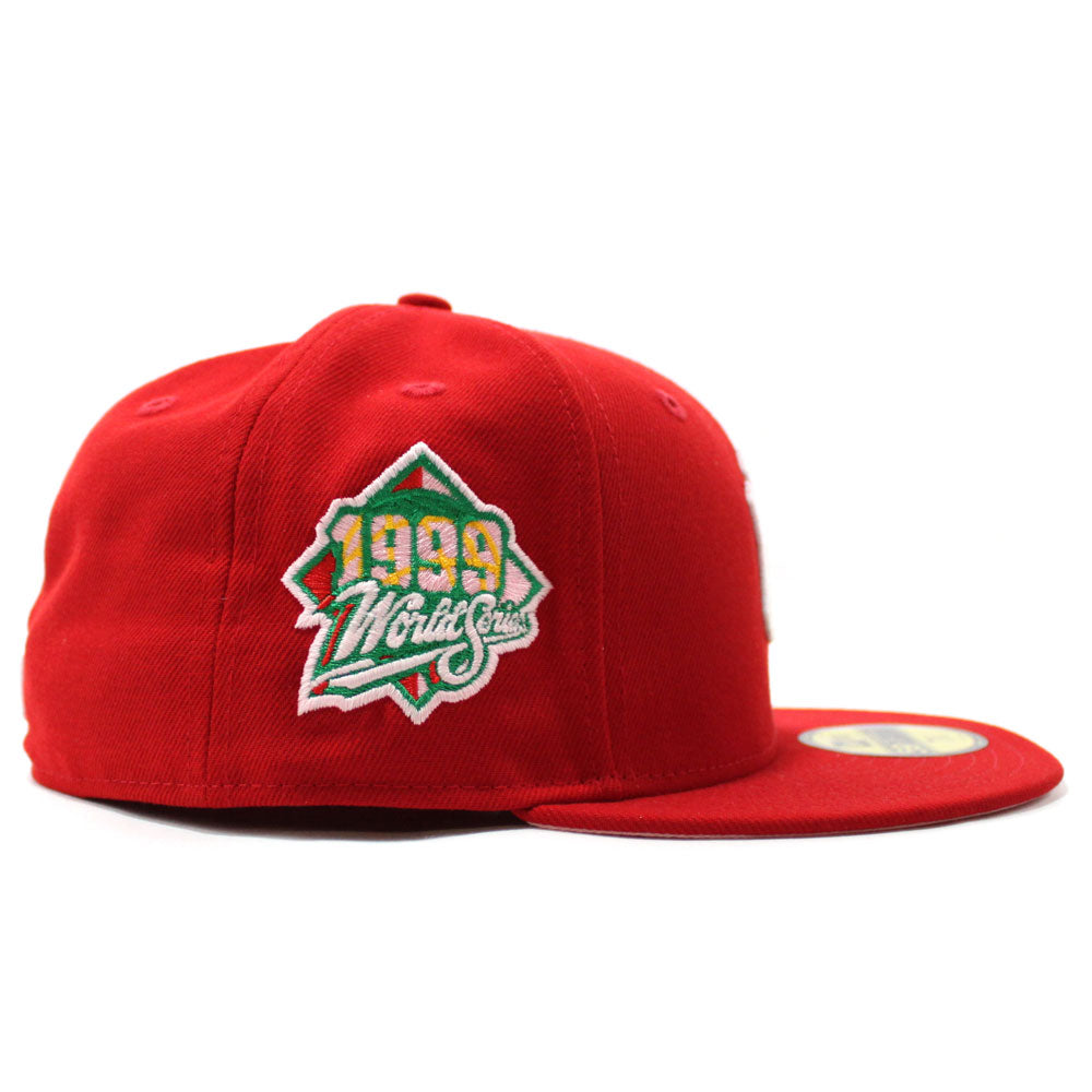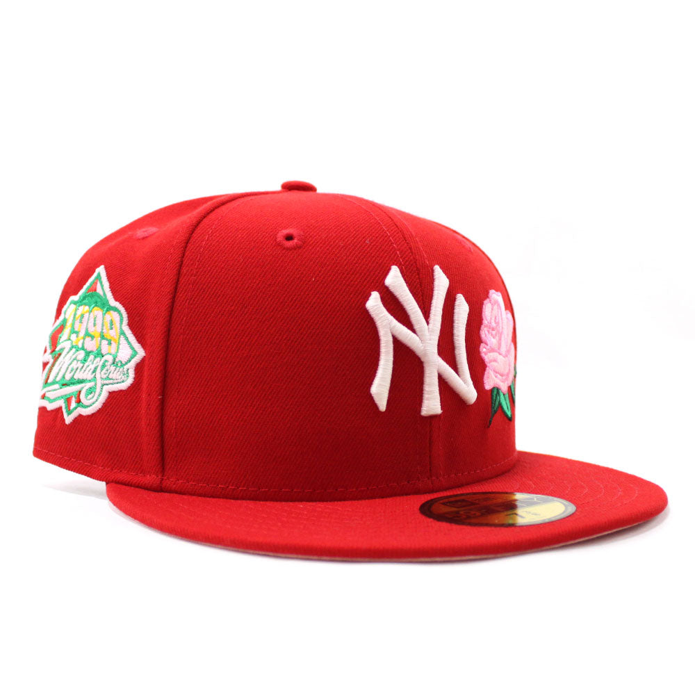 Rose New York Yankees Rose 1999 World Series 59Fifty New Era Fitted Hat in Red with Pink Under Brim