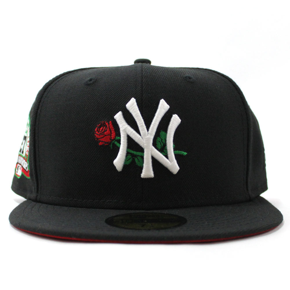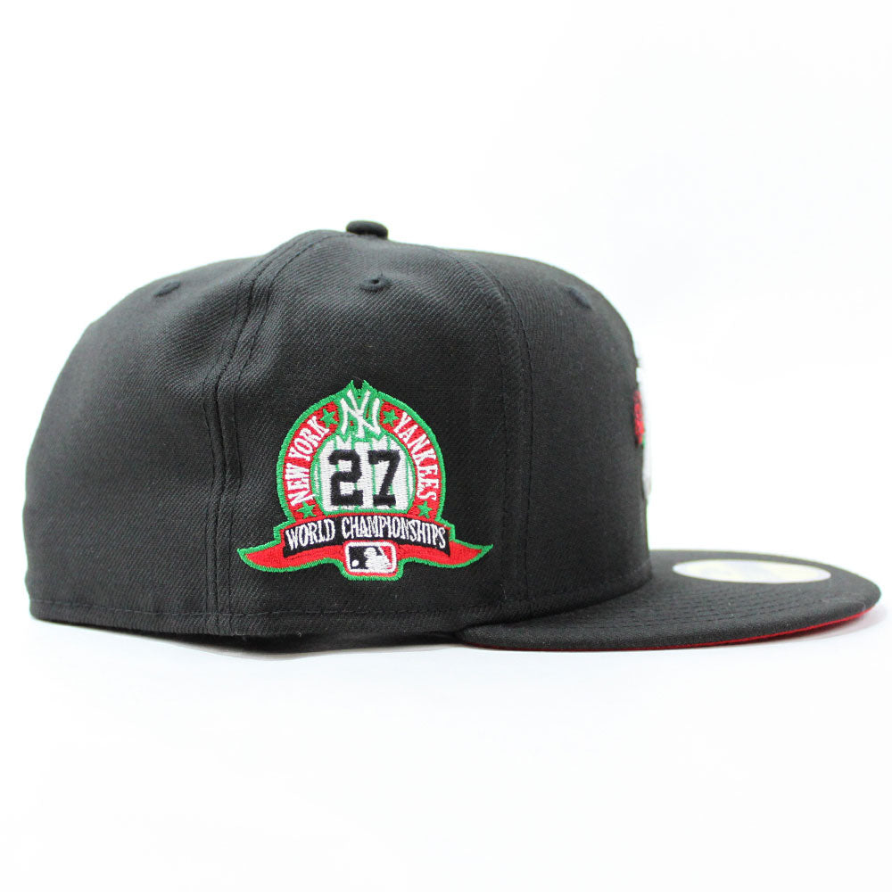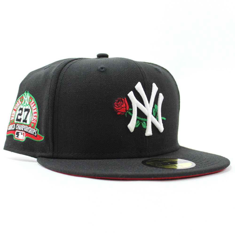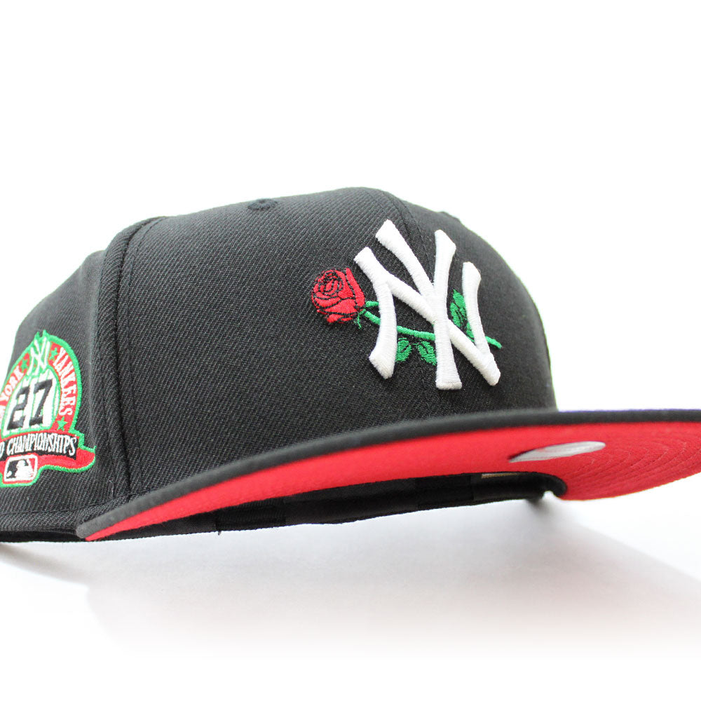 New York Yankees Rose 27 World Championships 59Fifty New Era Fitted Hat in Black with Red Under Brim. - Allergy Pack
