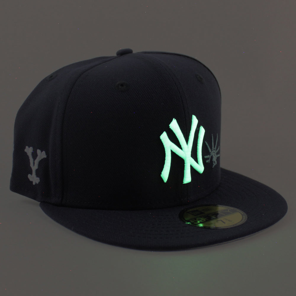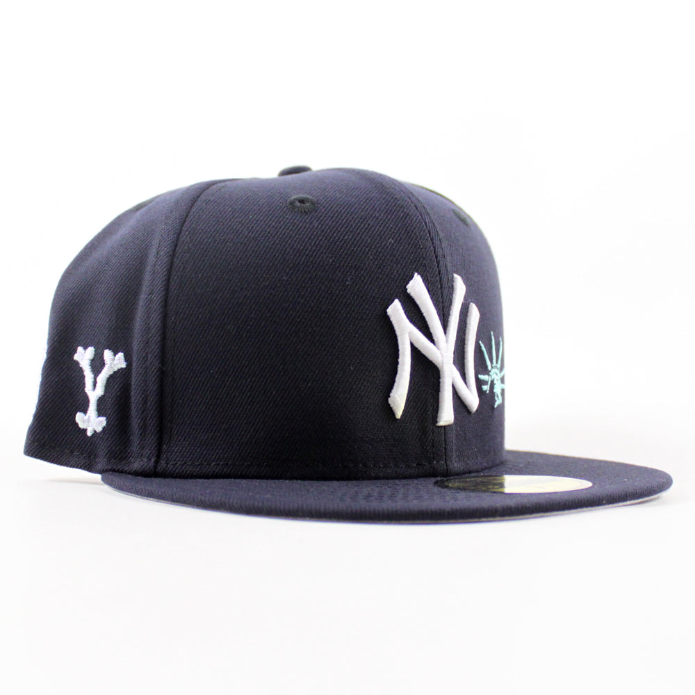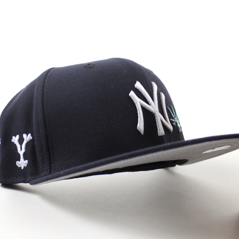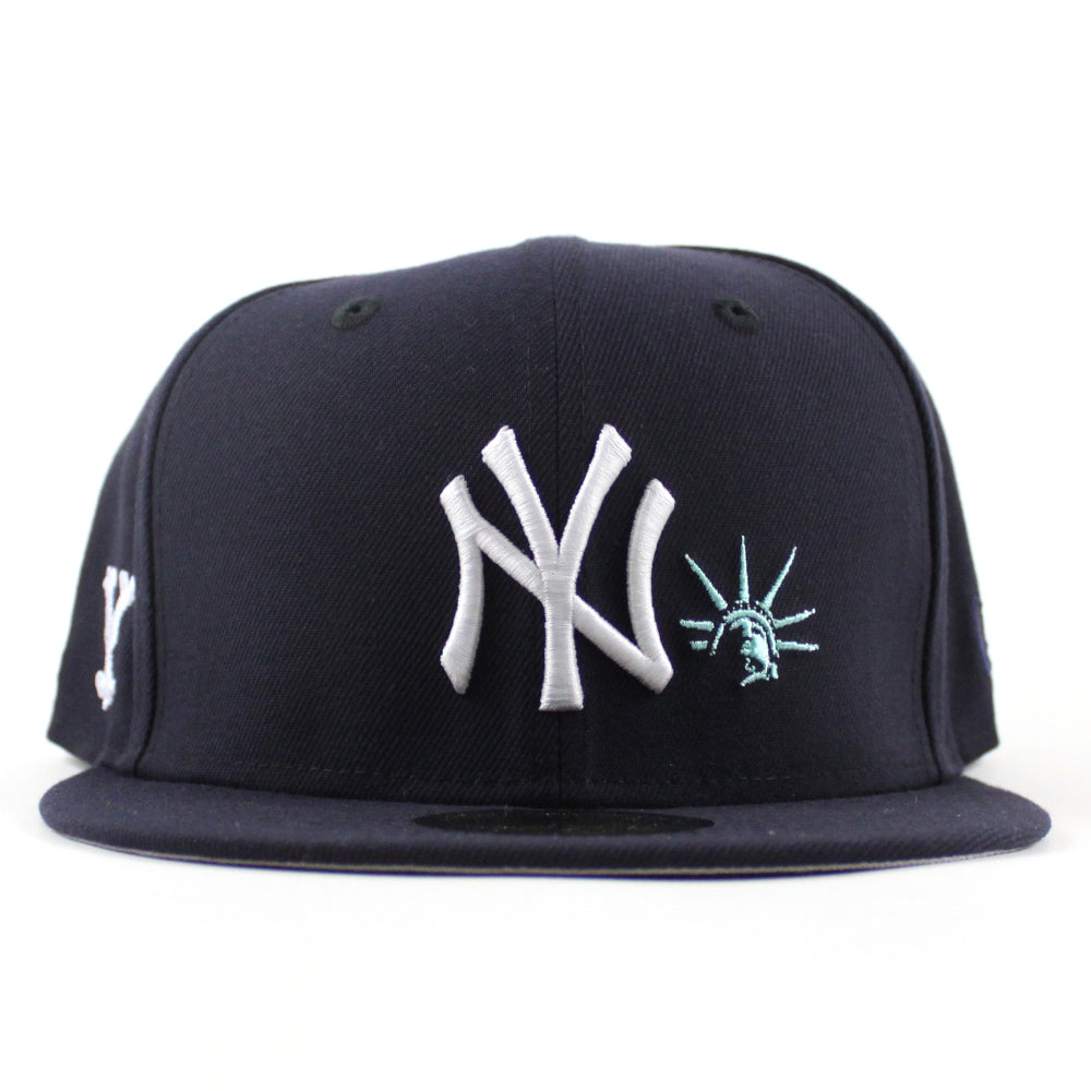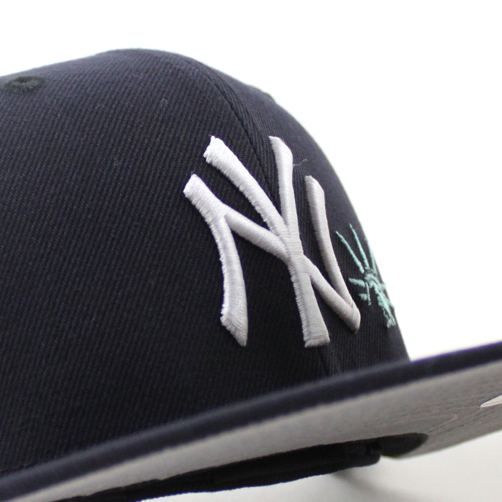 New York Yankees Statue of Liberty Highlander New Era 59Fifty Fitted Hat in Navy and Gray Under Brim.