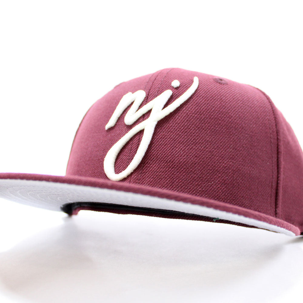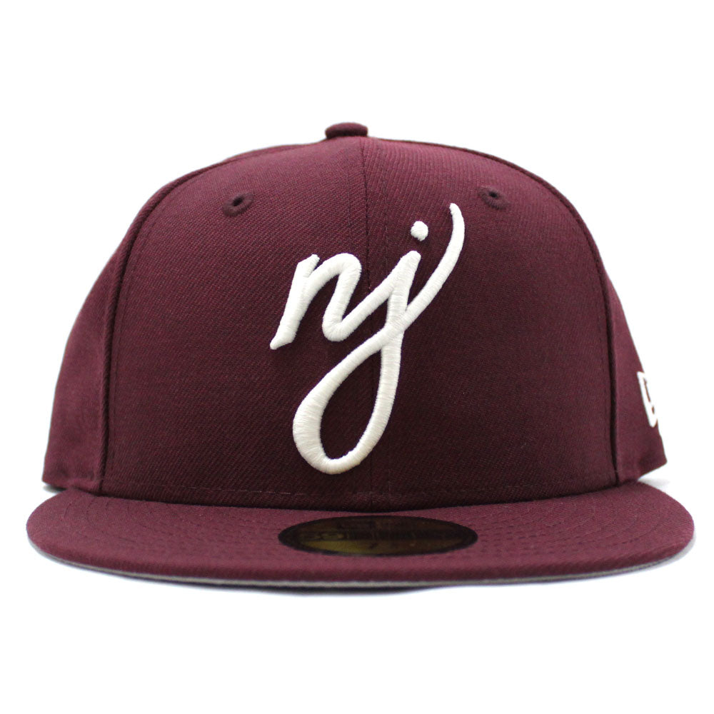 NJ Script New Era 59Fifty Fitted Hat (Glow in the Dark Maroon Gray Under Brim)
