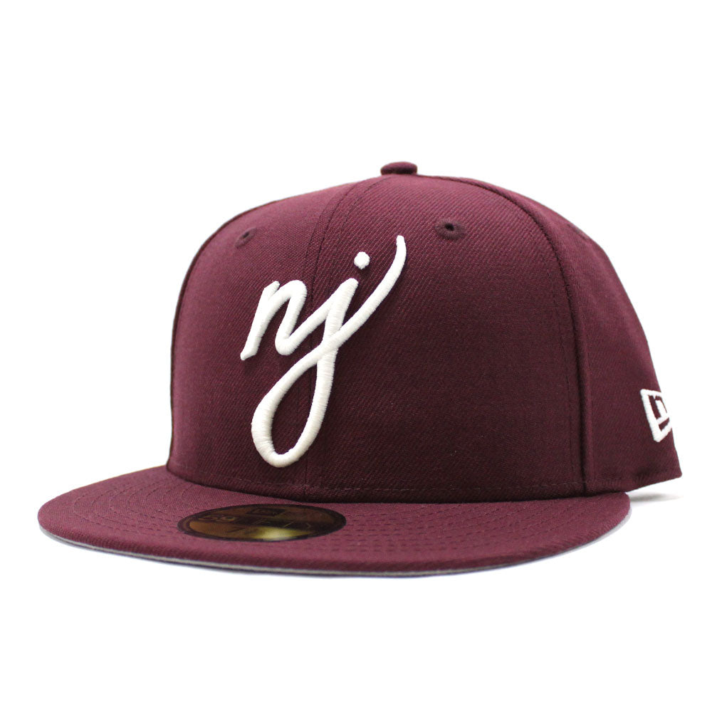 NJ Script New Era 59Fifty Fitted Hat in Maroon & Gray Under Brim. Great fitted to show some NJ Pride and an every day wear.
