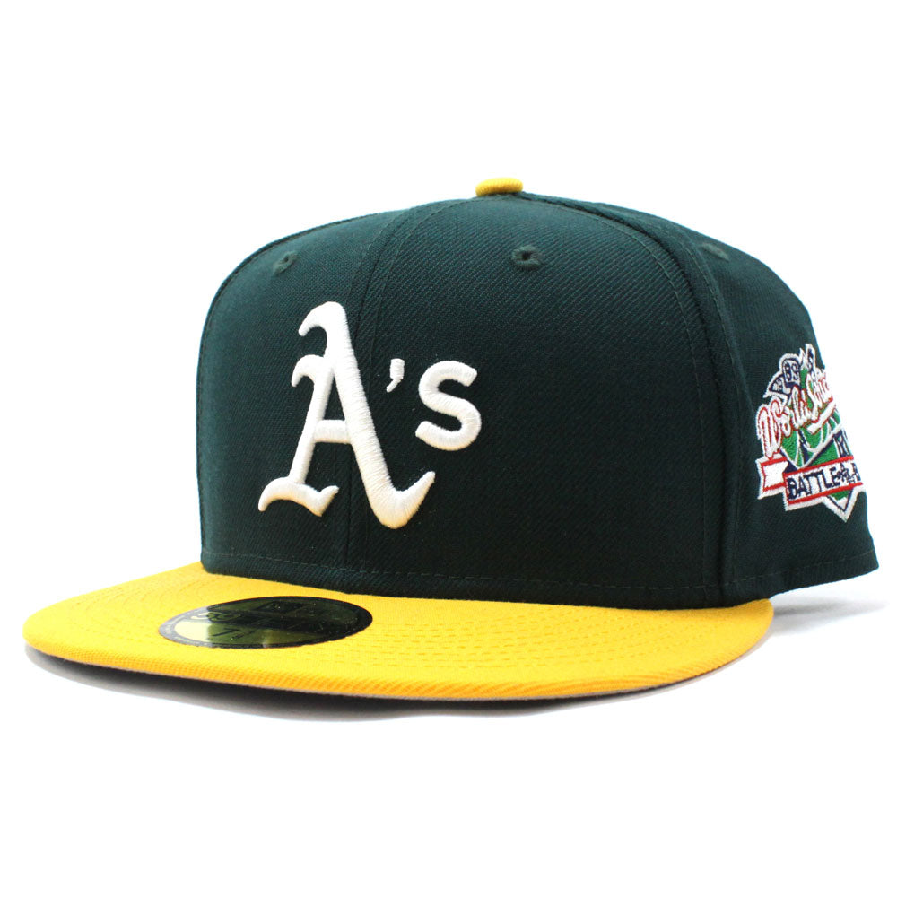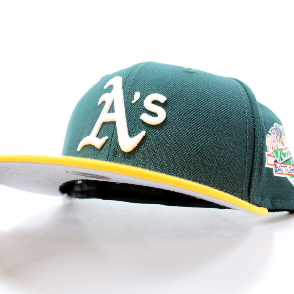 Oakland Athletics 1989 World Series New Era 59Fifty Fitted Hat (BATTLE OF THE BAY Green Yellow & Gray Under Brim)