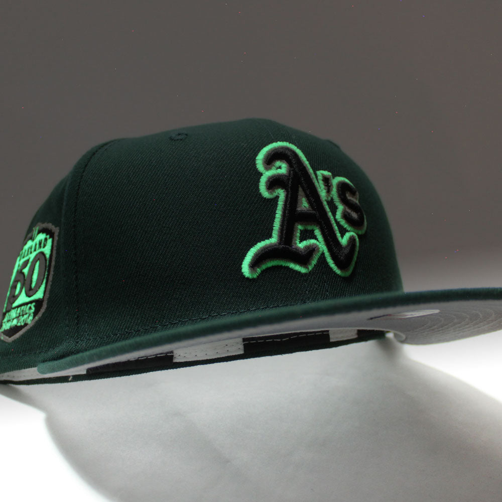 Oakland Athletics 50TH ANNIVERSARY New Era 59Fifty Fitted Hat (Glow in the Dark Green Gray Under Brim)