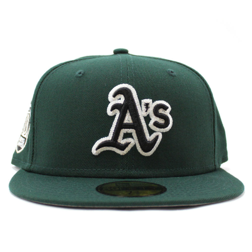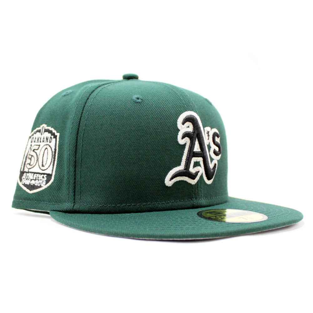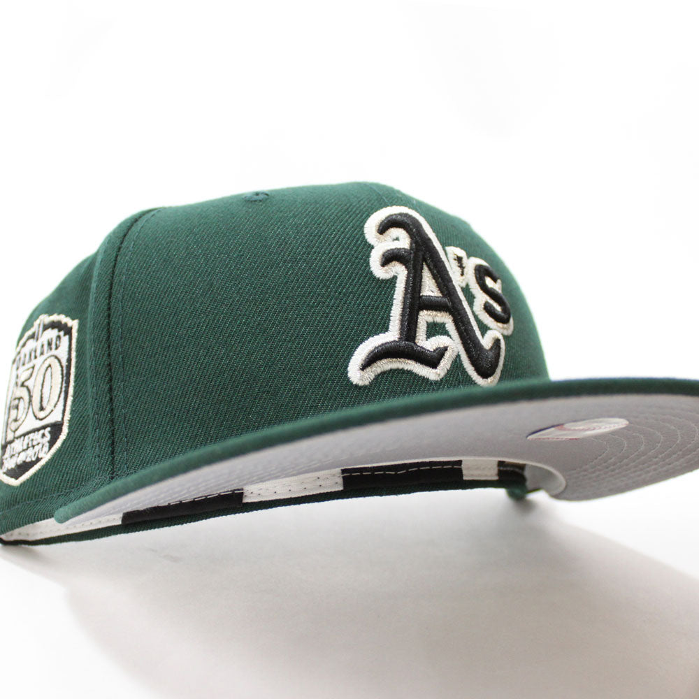 Oakland Athletics 50TH ANNIVERSARY New Era 59Fifty Fitted Hat in Green with Gray Under Brim. Golden State Warriors Color.