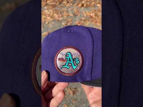 Oakland Athletics Swinging A’s New Era 59Fifty Fitted Cap in Purple, Black and Lavender Under Brim.