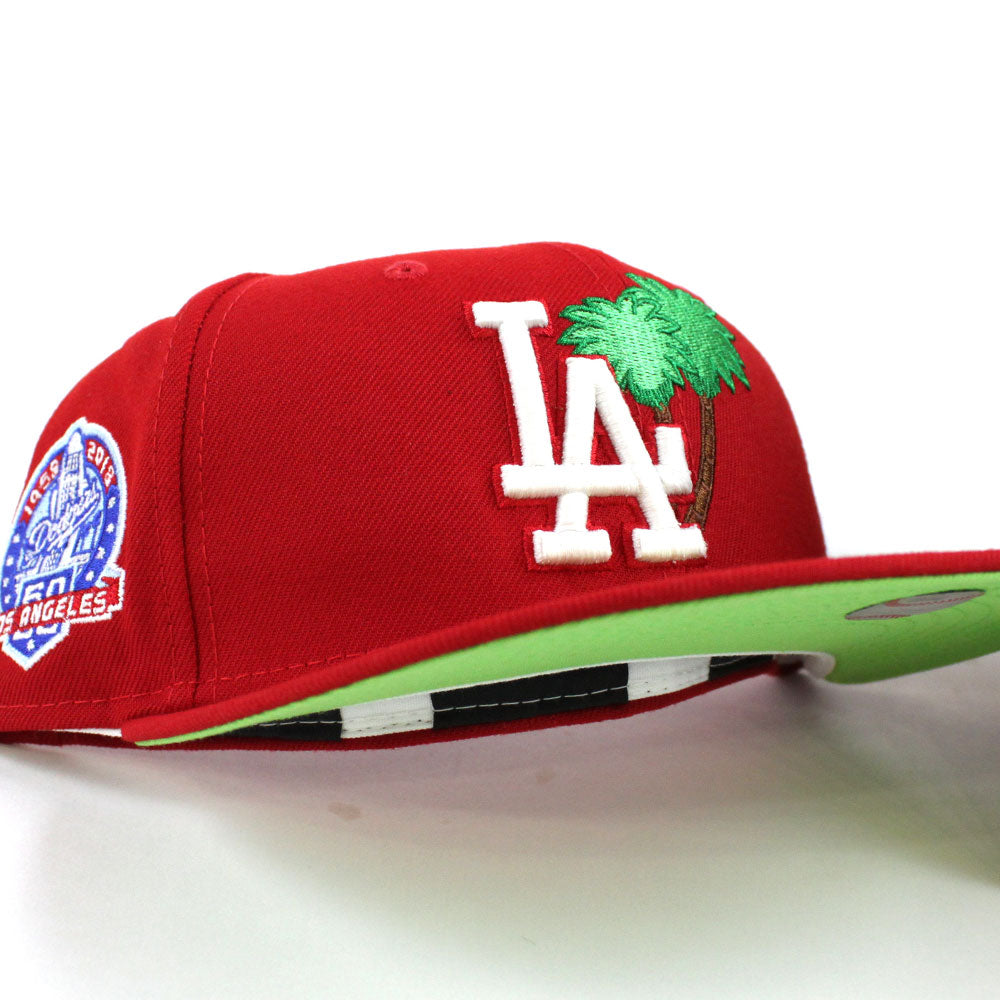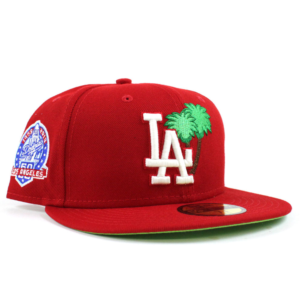 Palm Tree Los Angeles Dodgers 60th Anniversary New Era 59Fifty Fitted Hat (Red Glow in the Dark Green Under Brim)