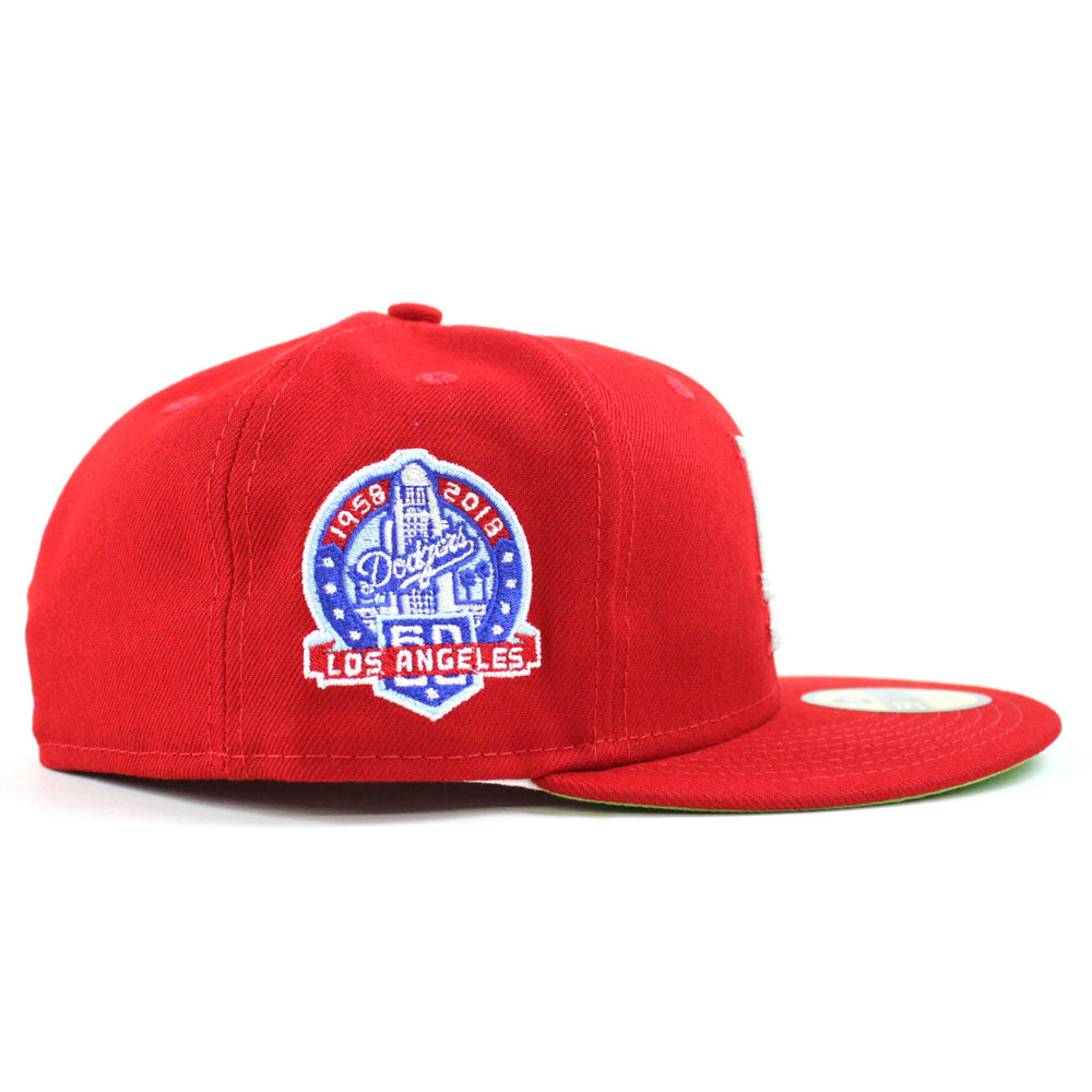 Palm Tree Los Angeles Dodgers 60th Anniversary New Era 59Fifty Fitted Hat in Red, Glow in the Dark & Green Under Brim.
