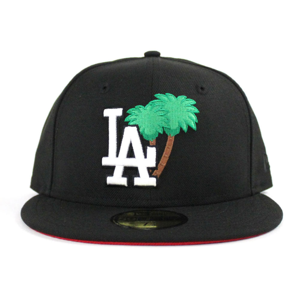 Palm Tree Los Angeles Dodgers New Era 59Fifty Fitted Hat in Black & Red Under Brim.