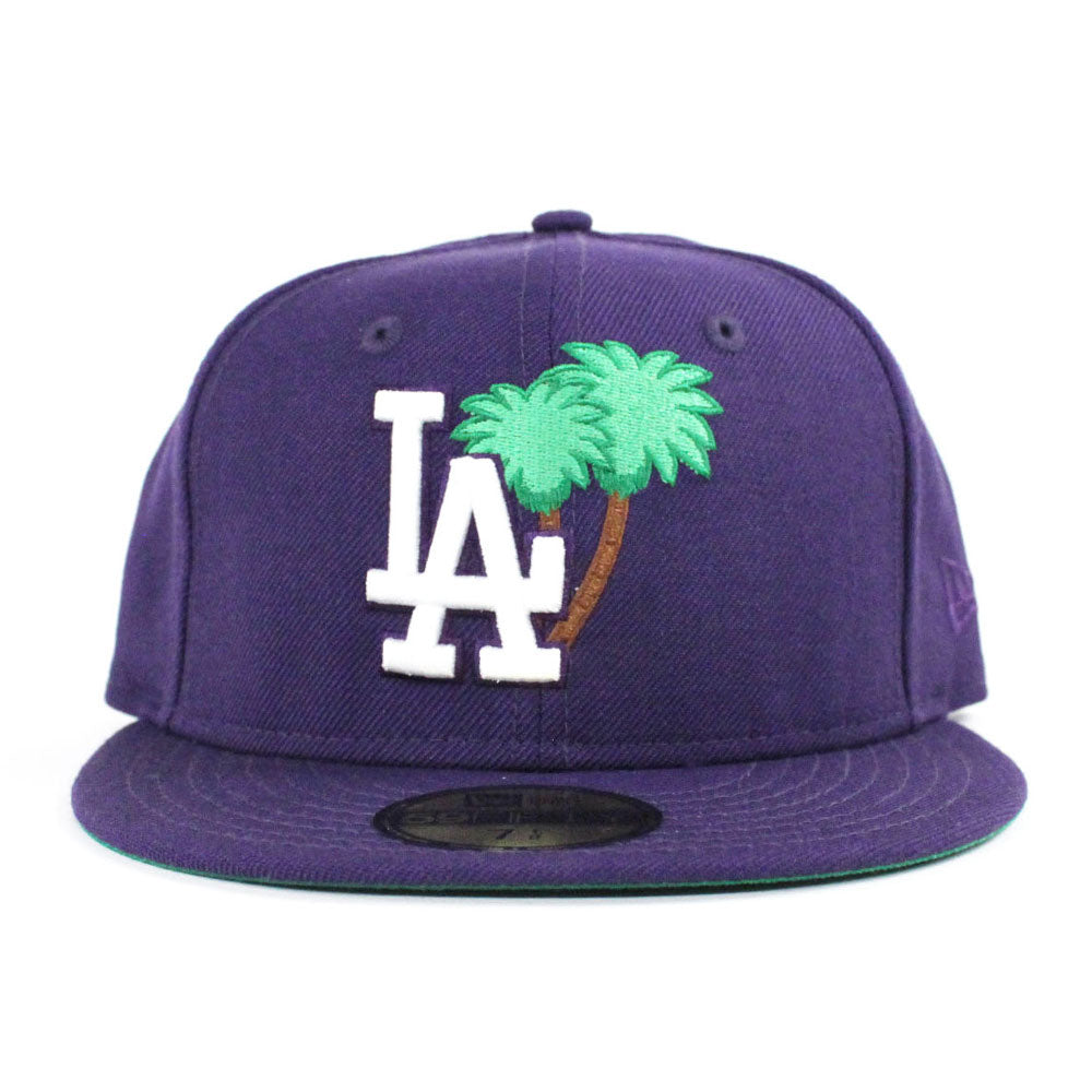 Palm Tree Los Angeles Dodgers New Era 59Fifty Fitted Hat (Purple Green Under Brim)