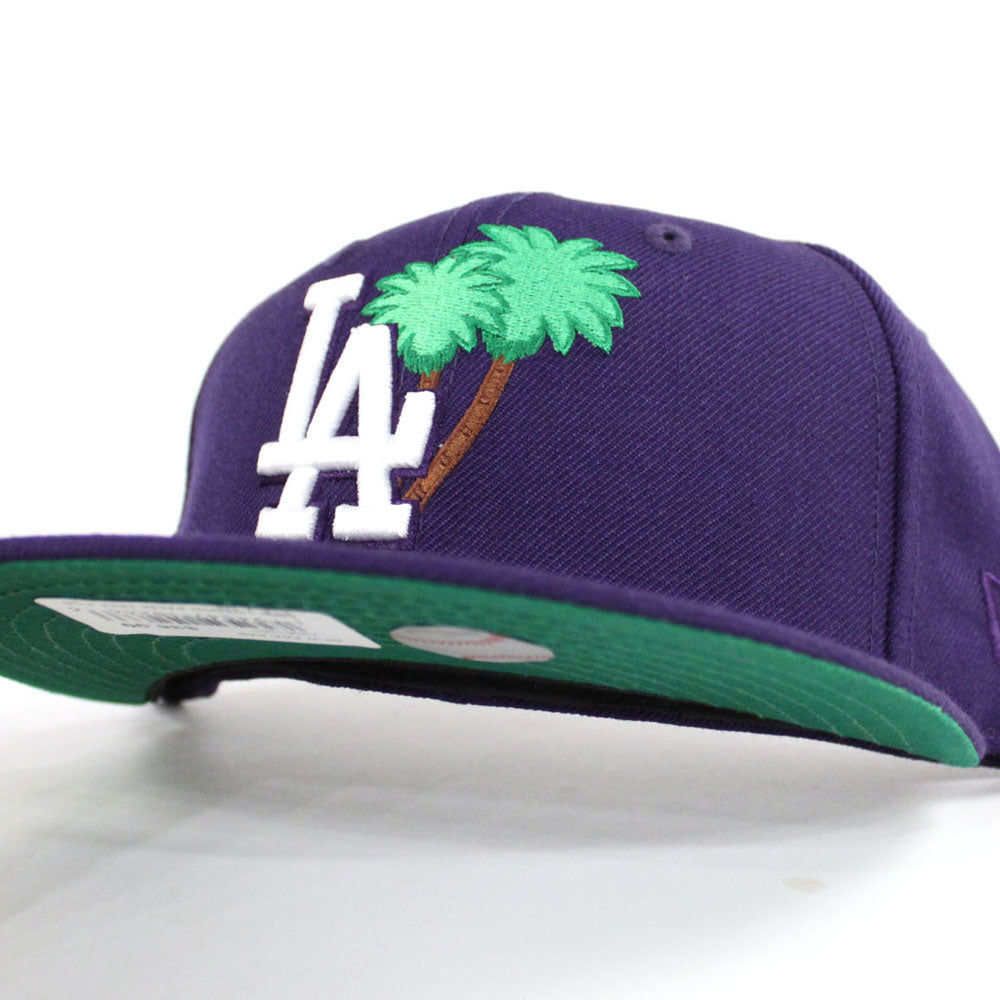 Palm Tree Los Angeles Dodgers New Era 59Fifty Fitted Hat in Purple & Green Under Brim.
