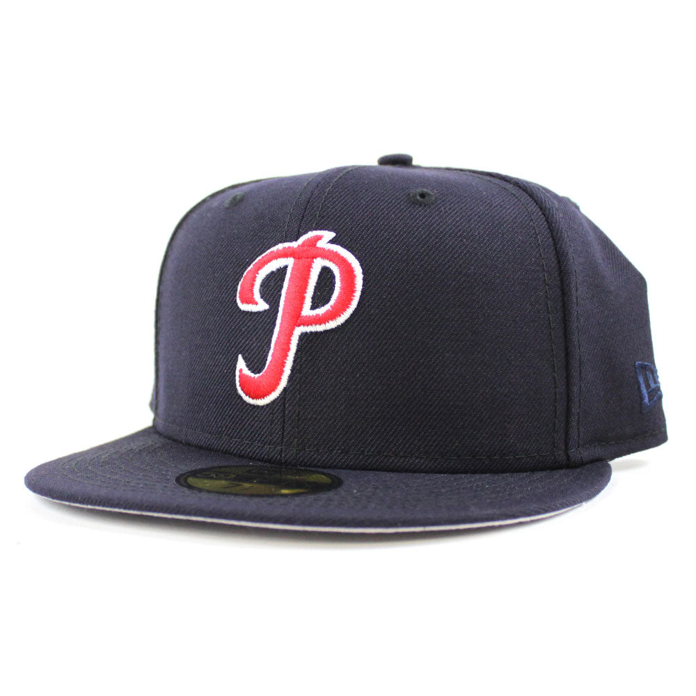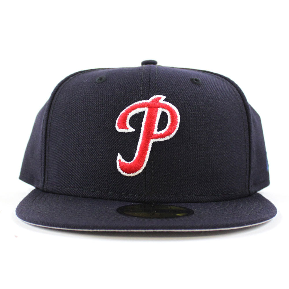 Philadelphia Phillies Retro 59Fifty New Era Fitted Hats in Navy & Gray Under Brim.