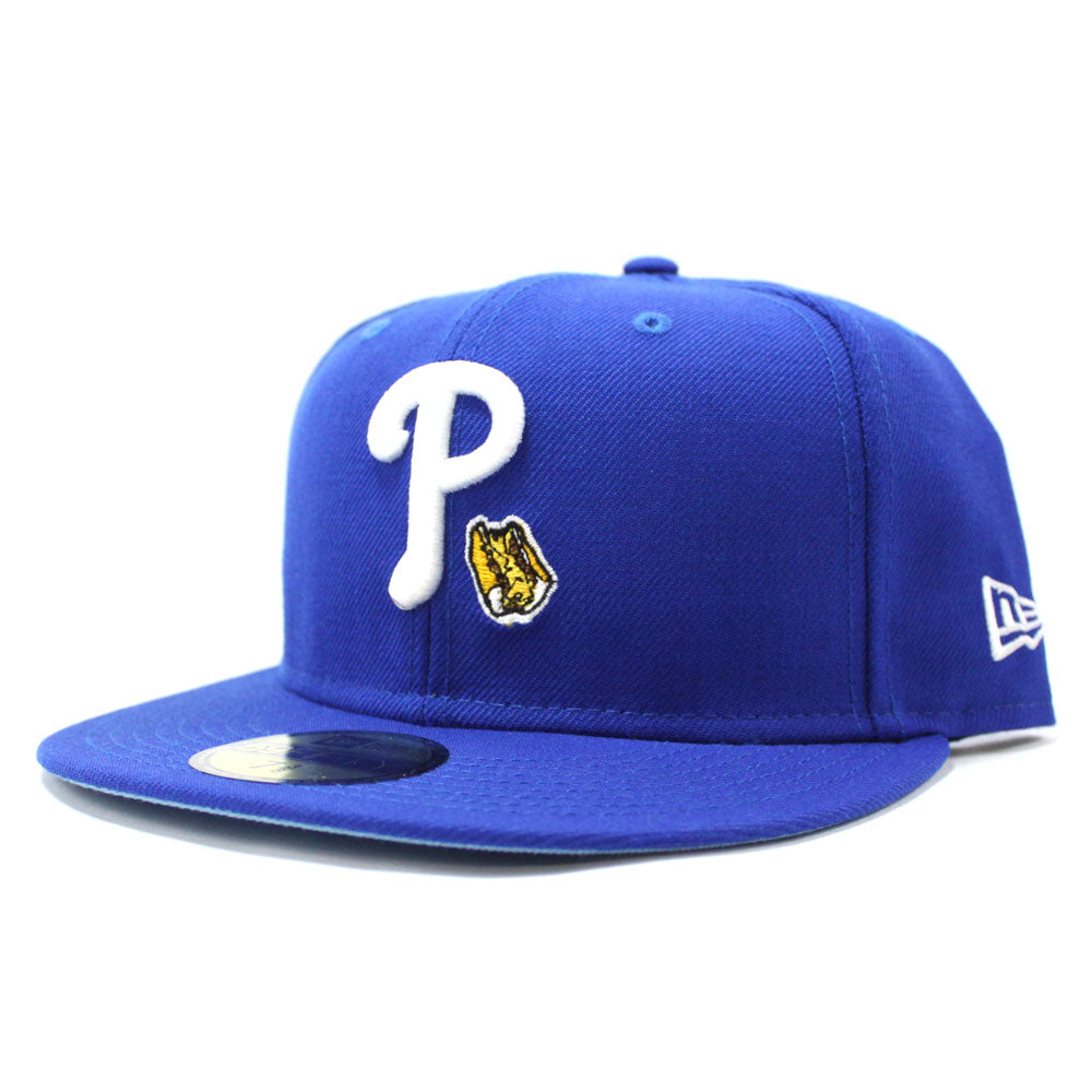 Philadelphia Phillies Team Eats Logo 59Fifty New Era Fitted Cap in Blue with Sky Blue Under Brim.  (Icy Blue Bottoms)