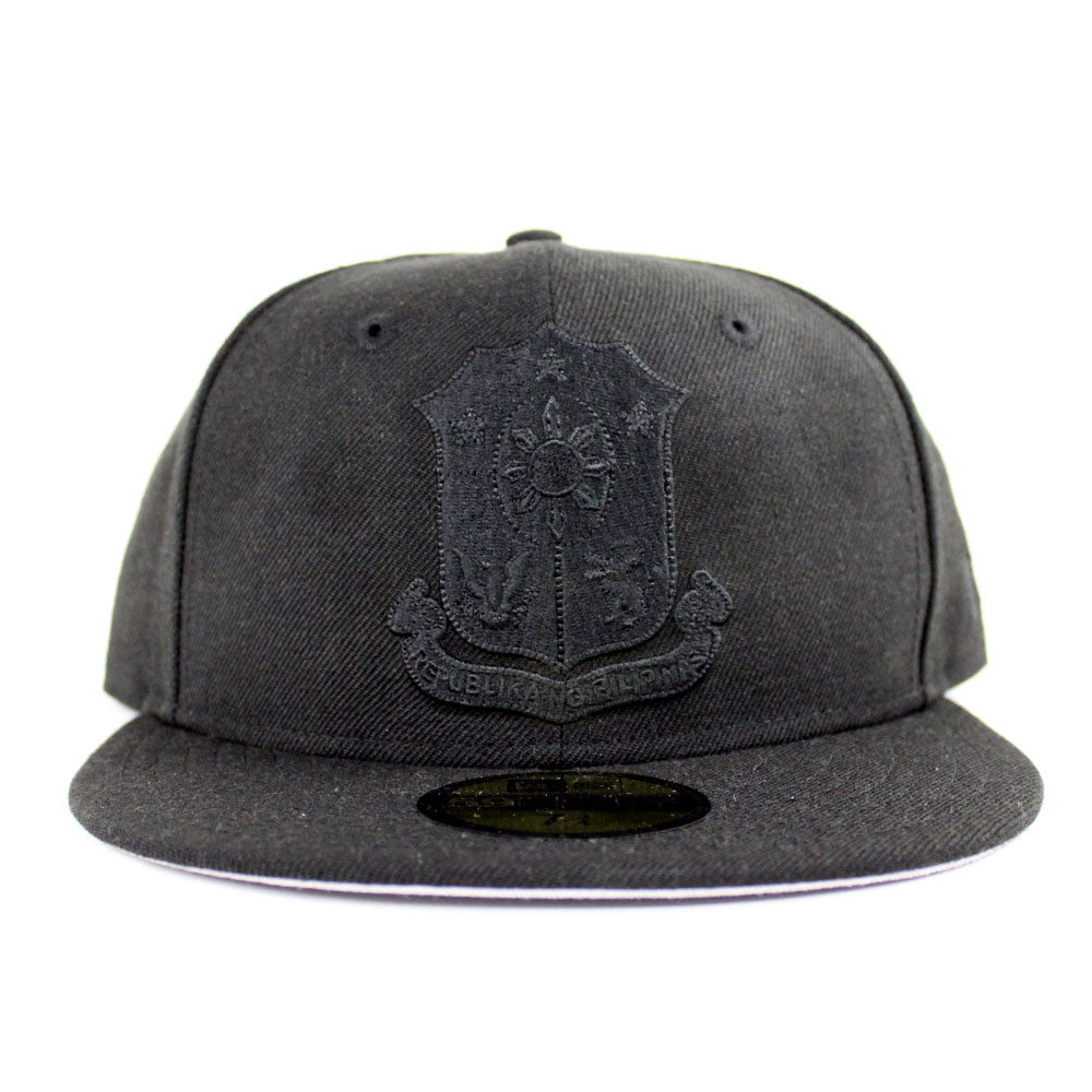 Philippine Crest New Era 59Fifty Fitted Hat in Black on Black with Gray Under Brim. On ECC shelves now, don't sleep.